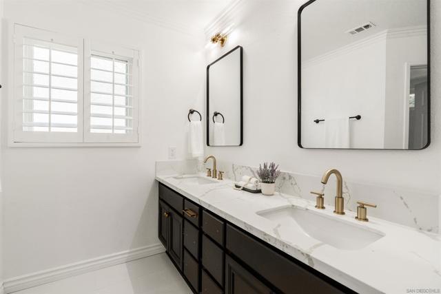 Welcome to 29747 Circle R Court, a beautifully remodeled home featuring high-end designer finishes throughout. Located inside a private gated community of Treasures at Castle Creek, this turnkey residence offers modern style, comfort, and convenience in one of Escondido’s most peaceful enclaves. Step inside to soaring vaulted ceilings, abundant natural light, and an open-concept layout that feels bright and inviting. The newly redesigned kitchen stands out with sleek countertops, stainless steel appliances, custom cabinetry, and contemporary fixtures—perfect for everyday living and entertaining. Each bathroom has been upgraded with spa-inspired materials and thoughtful design details that elevate the entire home. The spacious bedrooms provide flexibility for guests, work-from-home needs, or a relaxing retreat. Outside, enjoy a private yard ideal for dining, gardening, or unwinding in the quiet cul-de-sac setting. Additional highlights include extensive storage in the garage, offering convenience for organization, hobbies, or outdoor gear. With stylish upgrades from top to bottom, this home is truly move-in ready. Minutes from the 15 freeway, golf, hiking trails, and local dining, 29747 Circle R Court blends tranquility and modern living in a beautifully finished package.
