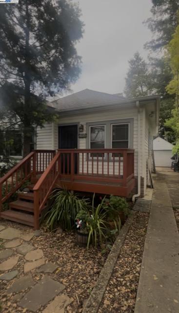 Discover this enchanting Millsmont bungalow—a rare blend of original charm, modern touches, and endless potential. Public records show 2 bedrooms, including a uniquely placed second bedroom accessible by a spiral staircase, giving the space a cozy loft-like feel. The home features a warm family room that could easily be reimagined into a spacious primary suite with its own bathroom. (Home has 2 full bathrooms). Original details shine throughout with built-in shelves framed by glass doors and a striking brick fireplace adorned with artistic historic inserts. Step outside into your own urban oasis: a lush, storybook-inspired garden surrounded by mature trees and fruit trees—peaceful, private, and magical. The semi-converted garage offers additional possibilities and was previously used as an art and music studio, with potential for an ADU (buyer to verify with City of Oakland). Centrally located near the 580, AC Transit, schools, and neighborhood conveniences, this home offers character, comfort, and room to create your vision. What are you waiting for? Make it your own! (Professional Photos Coming Soon)