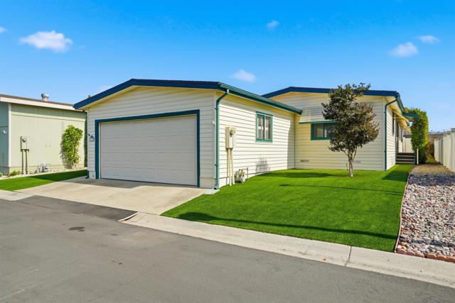 Well maintained light and airy home with central AC in the New Frontier gated community! This sought after +55 community has it all with it's lush greenbelts, green grass, walking paths and friendly neighbors! It has 2 relaxing pools, indoor hot tubs, tennis courts, pickle ball, horseshoes, a putting green, game room, community room, library, and more. This single level home has a great layout featuring 2 nice sized bedrooms with new carpet, 2 full bathrooms, a large kitchen with lots of counter and cabinet space, a separate dining room, a laundry room and a huge living room too. The master bedroom has double patio doors that open up onto a covered patio area. Not all of the homes in New Frontier have yards and garages but this this home has a front yard with low maintenance artificial green turf and a fully fenced backyard with a covered patio for your BBQ's. It also has a large 2 car garage with lots of space for storage and tools.
