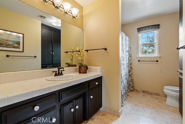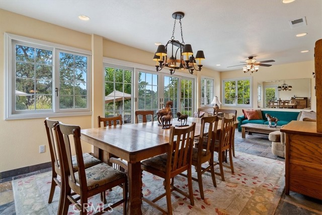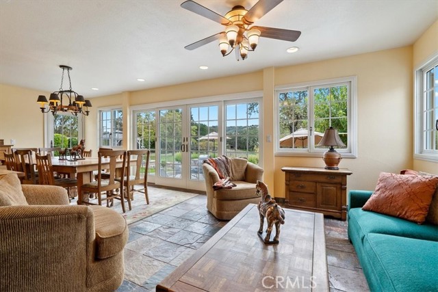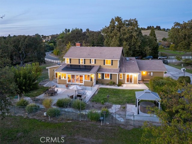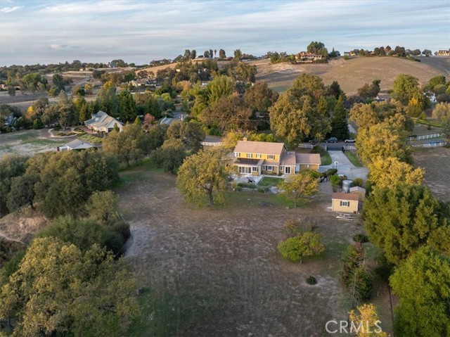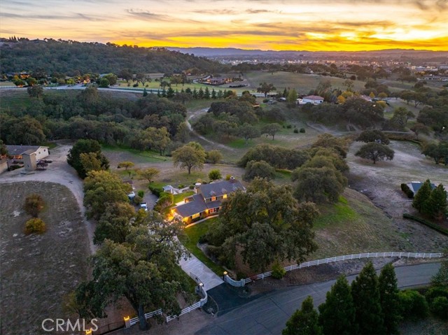 Nestled on over 5 picturesque acres in the desirable Spanish Camp community of Paso Robles, this 3,415± sq ft residence offers exceptional space, privacy, and potential. The home features primary suites on both the main and upper levels, along with two additional bedrooms and a dedicated office—ideal for multi-generational living or flexible work-from-home needs. A charming media/sitting room could be connected to the downstairs primary suite, creating an opportunity for separate living quarters if desired. The property itself is dotted with majestic oak trees and enhanced by a creek that meanders along the back of the acreage, providing a peaceful rural backdrop. While the home is ready for your modern vision and updates, it benefits from owned solar, making it a rare opportunity to craft your dream estate in one of Paso Robles’ most coveted countryside neighborhoods.