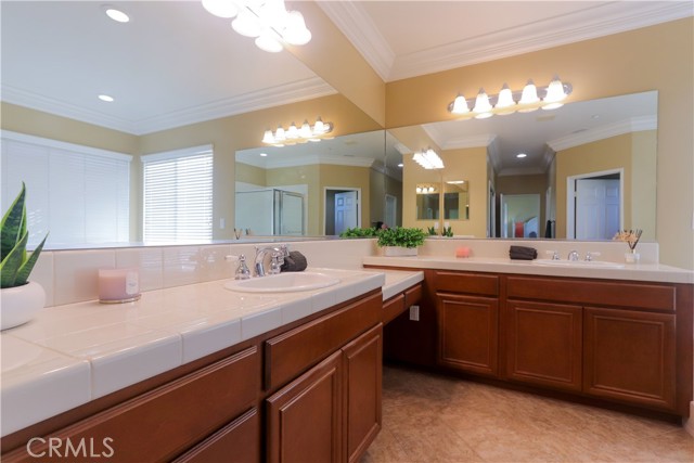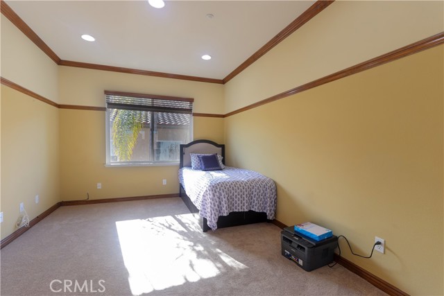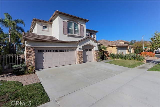 Beautifully upgraded home in the prestigious Rosecrest community! This 4 Bedroom + bonus room/office or 5th bedroom, 3-bath, 3-car garage home offers over 3,003 sq ft of bright, open living space with vaulted ceilings, new carpet, hardwood/wood flooring, plantation shutters, and dual-pane windows. The spacious kitchen features granite countertops, maple cabinets, a large island, double ovens, a recessed refrigerator, a breakfast nook, and a new, upgraded kitchen exhaust. Kitchen opens to the family room with a custom media center and fireplace, family room and living room are separated by a beautiful custom-designed decorative wrote iron panel with scrolling design, leading to a formal dining room with a custom built-in Wine rack. Downstairs includes a guest bedroom and a full bath. An upgraded staircase banister gives an elegant look