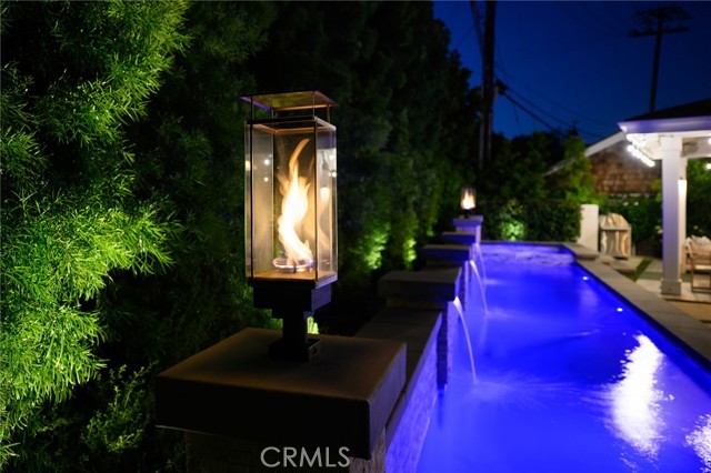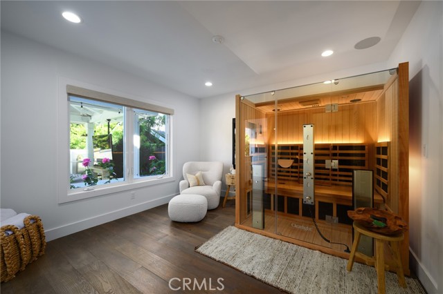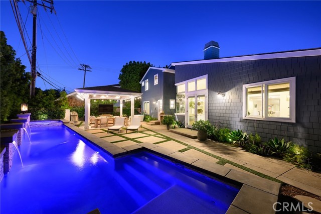 The backyard transforms daily living into a resort-like experience. A sparkling pool, refreshing cold plunge, and nearby infrared sauna set the stage for relaxation, wellness, and year-round enjoyment—framed by lush greenery and the gentle coastal air.
