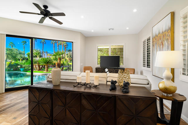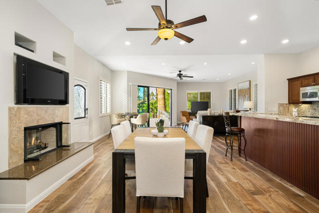 #93 DESERT SHORES RESORTExpanded Villa + Guest Cabana property is located on large, corner lot with greenbelt, Lake and waterfall views.Main Villa Sq Ft: 830Cabana: 373TOTAL LIVING: 1,558Garage: 370TOTAL STRUCTURE: 1,928Expanded Plan 30 floor plan with expansive living space with Living Room, Country Kitchen with Dining Space + a, spacious Retreat with en suite and walk-in closet + a detached Guest Cabana with kitchenette and batrhroom.Private corner location finished with pavestone decking and enclosed with wrought-iron doggie fence.The kitchen is equipped with maple cabinets and stainless-steel appliances including a refrigerator, oven range, dw microwave, Dining area has cozy fireplace for cool mornings and evenings.Association includes clubhouse, tennis,, pickleball fitness center, community pool & spa, social activities, 24-hour, guard gated with high-tech perimeter security, trailer storage area, doggie park, front yard landscape maintenance & brand new super-speed FIOS internet