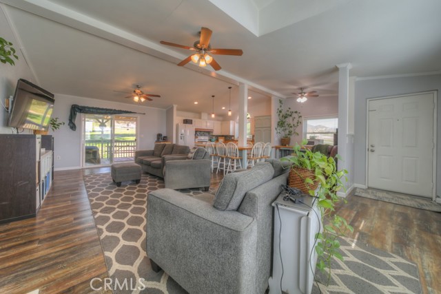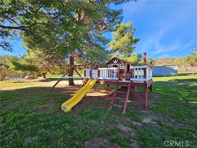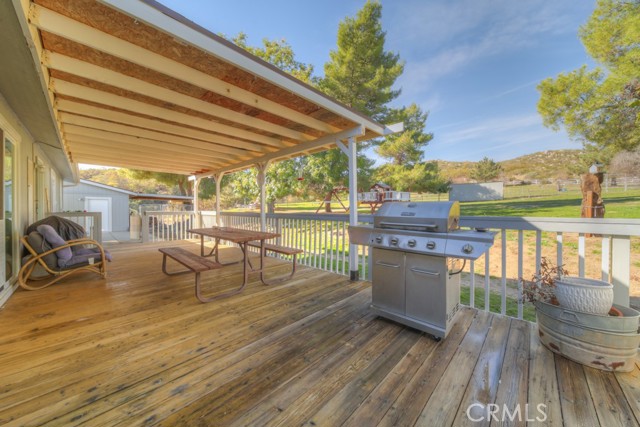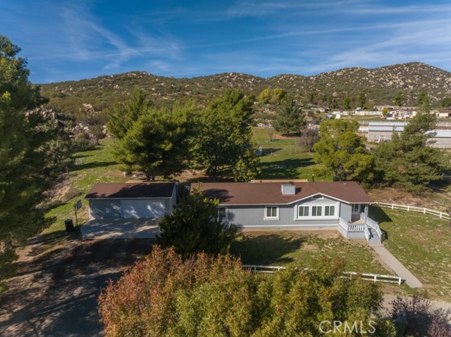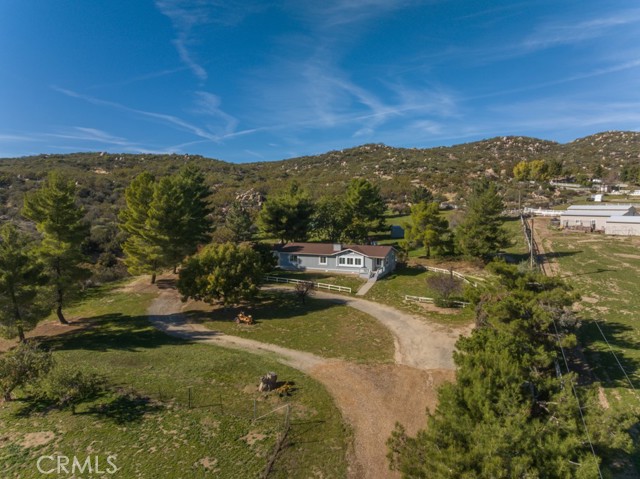 Oh So Beautiful!!!! Park setting on 4.10 Private Acres backing to open land/national forest with VIEWS!!!! This lovely, updated home will check all your boxes! Price, Location, Privacy, Spacious Land, Views and Updates!! Horse improvements include horse panel fenced in turnout with 3 sided shelter, tie up and direct access to trails. There is a detached 600SF garage with covered space behind AND a steel covered hay barn (or workshop, outdoor gym, parking (??). The entire property feels like a park from the moment you drive up the private entry passing your own Granny Smith Apple Orchard and continuing to the home privately tucked behind mature trees. The rear of the home opens to an expansive outdoor space with a spacious covered rear porch (see the pics!). Lots of mature trees with shade and room to add your own ideas as you want. This home has a nice bright open living space as the owners remodeled the kitchen which is open to the living space surrounded by windows to bring in the surrounding views! The kitchen remodel was approx. 6 years ago and includes a new oversized cooking center island, dining space combo, appliances, painted cabinets, custom copper farmer's sink, lighting and storage. Vinyl plank flooring has also been added in the living spaces, and the hall bath has been completely remodeled! ALL windows in the home and garage have been replaced with a lifetime warranty as has the living space sliding glass door. The exterior of the home was painted in 2023, the well has had upgrades with replaced booster pump and pressure tanks, and the garage door was recently replaced. You will find the primary bedroom spacious and enjoy waking up to beautiful views and trees. If you are an Equestrian, you will find yourself a few minutes away from miles of trails in the national forest behind or join your neighbors for a ride around the community and lake. If you enjoy walking and hiking, those same trails are available for your enjoyment. The Lake Riverside Community offers a private lake, tot lot, sports courts, picnic areas, pool, equestrian arena, and a private 3600 lighted airstrip (for community use only - guests okay). Cal Fire is located right within the gated community and Temecula is approx 25 min away offering all of the dining and shopping options you need! Also nearby enjoy Wine Country, Idyllwild, Julian and Palm Desert. So Cal's Last Frontier!!!!