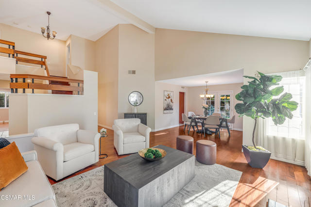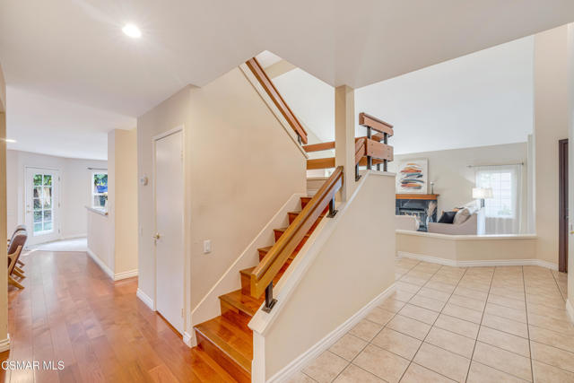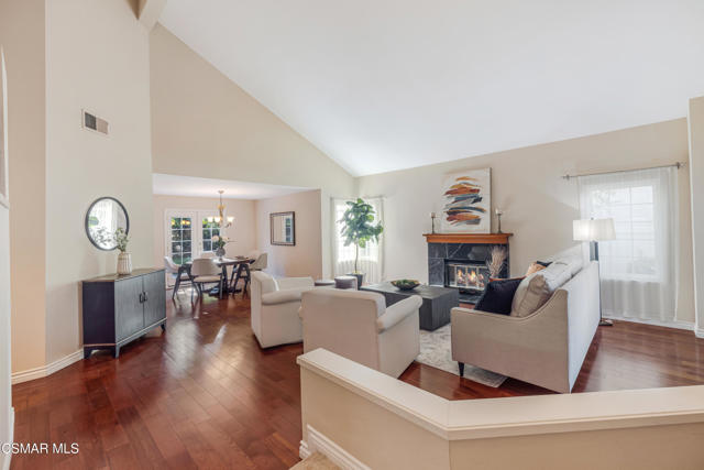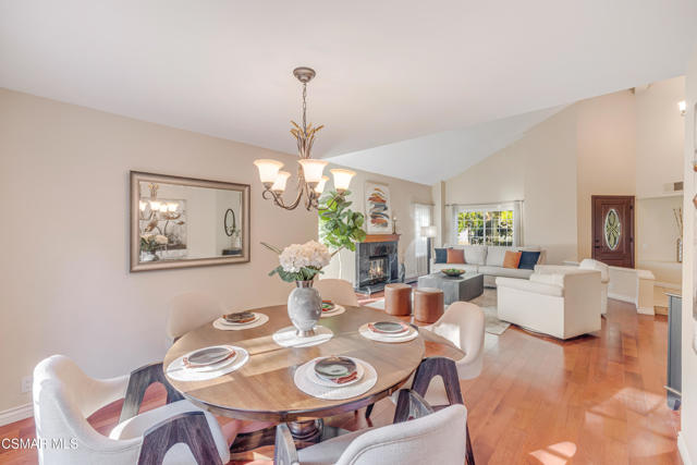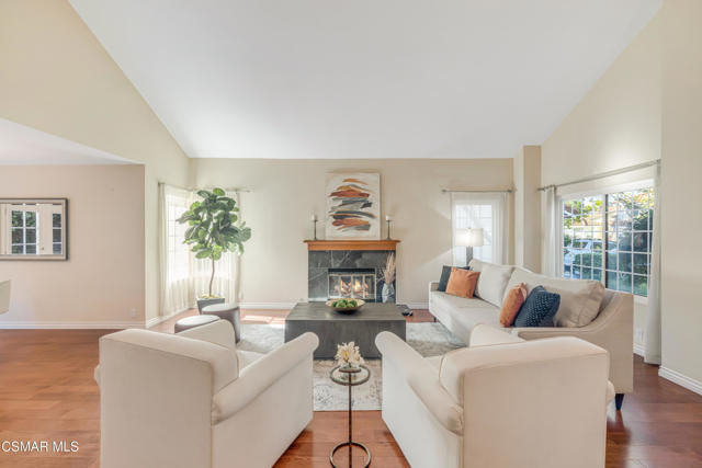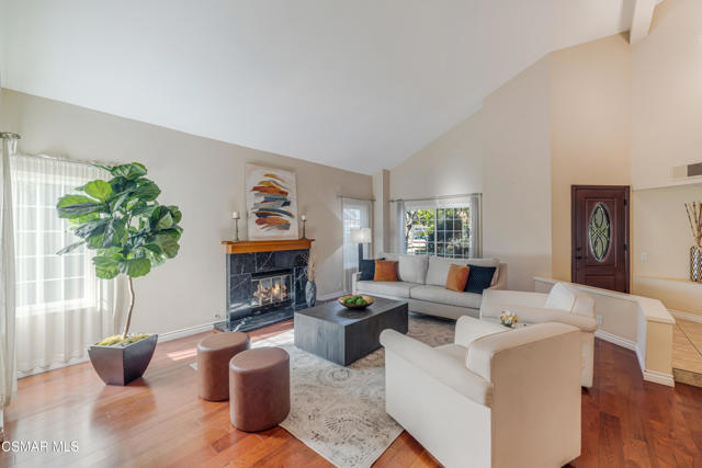 Wonderfully situated at the end of a quiet cul-de-sac in one of Moorpark's most loved neighborhoods, this inviting 4-bedroom, 3-bath home blends warmth, comfort, and classic California living. Step through the front door and you'll instantly feel at home where sunlight filters through generous windows, and the fireplace glows softly in the living room. The high ceilings, gleaming wood floors, and open living spaces invite you to host formal family gatherings or enjoy relaxed weekends. The kitchen offers plenty of space to cook, with ample storage for all your culinary equipment ready for you to whip up the newest recipes. There is an easy flow from the breakfast area into the family room and backyard for those casual summer evenings. Atop the stairs, the primary suite feels like a private retreat that is light, airy, and designed for unwinding. Enjoy three additional bedrooms, with one bedroom on the first floor - offering a flexible space for kids, guests, multigenerational living or a home office. Outside, your backyard is just the right size for entertaining, gardening, or soaking up a little quiet time under the Moorpark sky. And because this home sits in a friendly HOA community with a neighborhood pool and spa, you'll enjoy beautifully maintained surroundings and be near shopping, parks and services. Topping off all the great features, this home has a three-car garage and upstairs indoor laundry, plus fully paid off solar panels. Put this on your Christmas list!