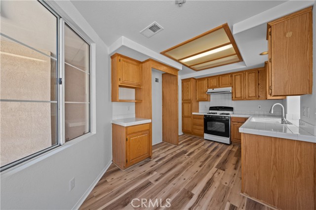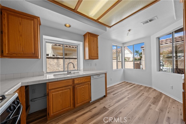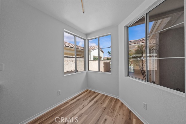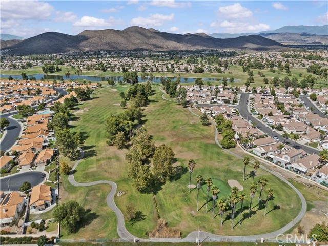 ***PRICED TO SELL**NOT a 55+ community**Welcome to this beautifully updated single-story courtyard home in the highly desirable Andalusia community of Menifee Lakes Golf Course! Discover the perfect blend of comfort, charm, and lifestyle in this home set right on the fairway in Menifee Lakes. With 2 bedrooms plus a den that is literally ready to be a THIRD BEDROOM by adding only a DOOR, 2 full bathrooms, and 1,466 square feet, this light and airy residence delights you with vaulted ceilings, fresh paint, and brand-new flooring throughout. The open layout is anchored by a double-sided fireplace that connects the family and dining rooms, creating an inviting space for gatherings or quiet evenings in. The kitchen’s bay windows and breakfast nook bring in natural light, while the spacious primary suite features dual mirrored closets and a slider leading to the covered patio. Step outside to enjoy breathtaking golf course views and glowing sunsets, perfect for entertaining or relaxing in the mild California climate — all the while set on a backdrop you’ll never tire of. Additional highlights include indoor laundry with cabinets, ample storage with multiple linen closets and garage cabinetry, and a low-maintenance yard. The gated courtyard entry adds privacy and curb appeal, absolute perfection for the upcoming trick-or-treaters! Life in Menifee Lakes offers more than just a home — it’s a lifestyle. Enjoy the resort-style amenities, spend sunny days at the private Beach Club with its lagoon-style pool, sandy beach entry, water slide, and BBQs, or enjoy paddle boating, miles of scenic walking and biking trails, and year-round community events. Golf enthusiasts will love being part of this premier course community, and everyone will appreciate the low HOA fees, lower taxes, and unbeatable location near shopping, dining, schools, and the 215 freeway. With its close proximity to Temecula's renowned wine country, the best SoCal beaches, live entertainent at exciting Pechanga Casino, this home is a winner! Whether you’re a first-time buyer, downsizing, or looking for a home that feels like a retreat, this Menifee Lakes beauty has it all. Don’t miss this opportunity to make this sought after community your new home!