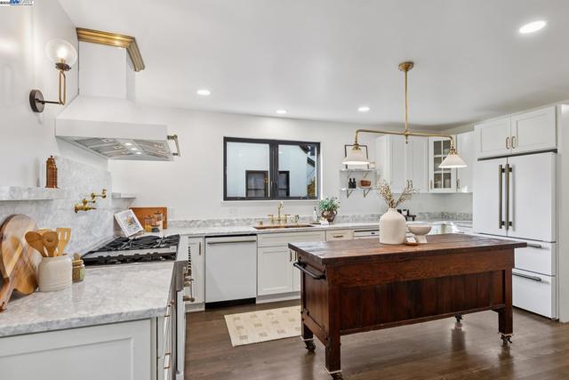STUNNING TUDOR nestled in Alameda’s coveted Fernside neighborhood, this beautifully restored 1927 house offers 4 bedrooms, 3.5 bathrooms, 2,333 SF, and a charming split-level layout. The house has bespoke features, renovated with permits, the main level features a spacious living room, dining area, newly added powder room, one bedroom and a stunning chef’s kitchen with marble countertops, a 48” gas stove, soft-close cabinetry and newer appliances. Upstairs is the primary suite, an additional bedroom and a full bathroom, while the lower level includes a family room, guest room, full bath and laundry area. Major system upgrades include upgraded electrical and plumbing, dual pane windows, flooring, central heating with added vents and ducts, and a sewer lateral replacement. Original architectural elements, such as the front windows and built-ins, were thoughtfully preserved, complemented by newer wood and LVP flooring, fresh paint, updated lighting, and beautifully renovated bathrooms. Additional improvements include roof repairs, seismic upgrades, refreshed landscaping and a rebuilt porch and driveway gate. A remarkable Tudor that marries classic character with thoughtful modern updates—absolutely worth seeing! Open House Sat 11/29 & Sun 11/30 2-4pm