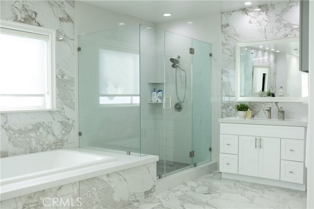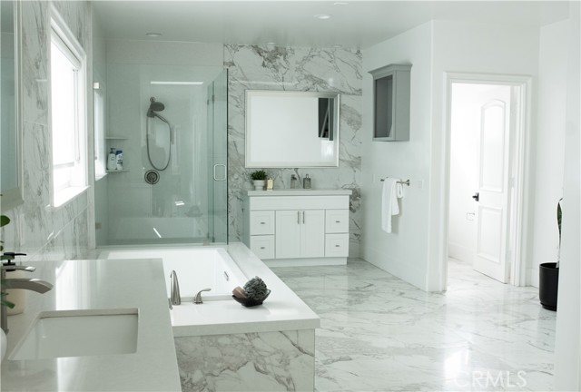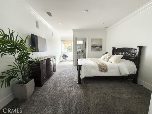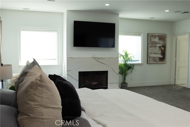 Each bedroom in this home boasts its own walk-in closet and en-suite restroom, ensuring ultimate comfort and privacy for all members of the household. The upgraded master suite offers a tranquil escape, with plenty of space and its own fireplace. Not to mention the massive master restroom with two large walk-in closets to match. Step outside onto the expansive upstairs exterior balcony. Ideal for enjoying the warm Southern California weather and stunning views.