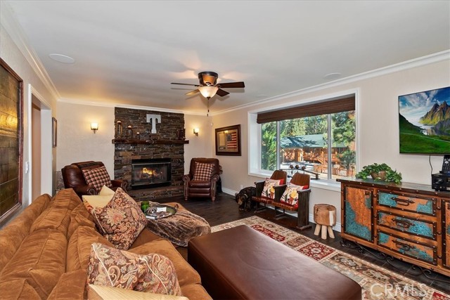 Discover the charm of 41659 Mockingbird Dr, a beautifully remodeled oasis in the desirable Eagle Point neighborhood of Big Bear Lake. This four-bedroom haven invites you into a lifestyle where comfort meets convenience, just a short drive away from Meadow Park, the lake, ski slopes, and the vibrant village. Step into a thoughtfully designed space where a fully updated kitchen becomes the heart of the home. Picture yourself preparing meals on gleaming granite countertops, surrounded by stainless steel appliances. The adjacent family room, with its cozy fireplace, offers a perfect spot for gathering on crisp mountain evenings. Retreat to the primary suite, a serene escape with a walk-in closet that promises to be your personal sanctuary. Modern fixtures and finishes elevate the bathrooms, creating spaces that feel both luxurious and inviting. Outside, a large back deck extends your living area into the fresh mountain air, complete with a spa for ultimate relaxation. The fenced yard provides a private retreat ideal for entertaining or simply soaking up the sun. The heated, oversized two-car garage with workspace ensures all your storage and tinkering needs are met. With fresh paint, crown molding, and new flooring throughout, this home radiates warmth and elegance. Its prime location and modern amenities make it an exceptional opportunity. Experience the unique blend of adventure and tranquility that Big Bear Lake living offers. Opportunities like this are rare - schedule your private tour today and step into a new chapter of mountain living. Information is deemed reliable but not 100% guaranteed. Buyer and buyers agent are solely responsible for verifying the accuracy of any information provided.