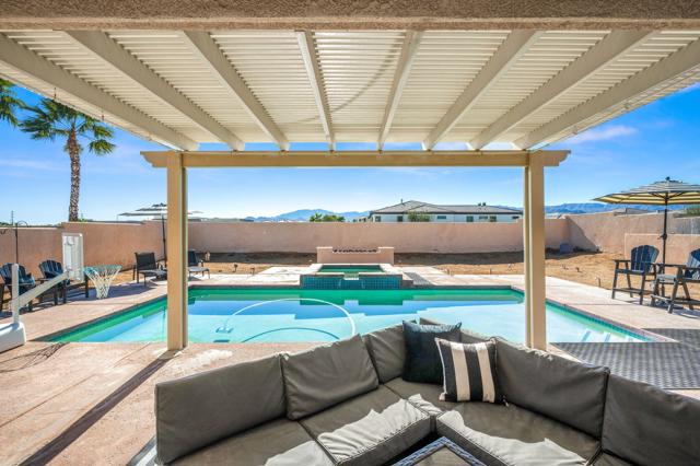 Discover turn-key luxury in this stunning 3-bedroom, 2-bath home. Situated on an expansive 10,109 sq. ft. lot, the private backyard is a resort-style paradise featuring a pristine saltwater pool and spa, complete with a dramatic fire feature, an outdoor shower, and spectacular mountain views.Significant upgrades ensure total comfort: a nearly-new HVAC system (1.5 years old), all-new saltwater pool equipment, new ceiling fans, updated kitchen cabinetry, front landscaping, and Ring system for enhance security. The location is unbeatable: just moments from world-class dining and shopping on El Paseo, and a short drive to the Empire Polo Club, Indian Wells Tennis Gardens, and golf courses galore. Last but not least, enjoy a high-value desert lifestyle with the massive advantage of NO HOA dues!