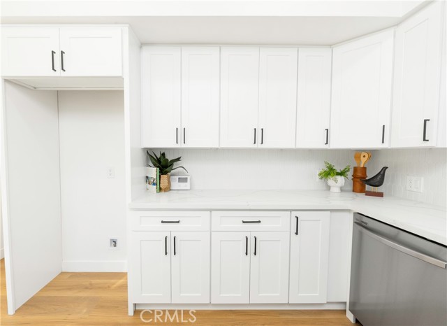 residence features a brand-new kitchen with modern cabinets, elegant quartz countertops, and