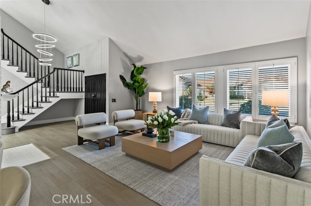 9882 Kings Canyon Pl – An exquisitely reimagined Park Huntington Catalina model nestled in the heart of South Huntington Beach. This luxurious 4-bedroom, 3-bath residence plus expansive bonus/entertainment room exudes coastal sophistication from the moment you arrive, with designer hardscape, leaded-glass double entry doors, and dramatic soaring ceilings bathed in natural light.