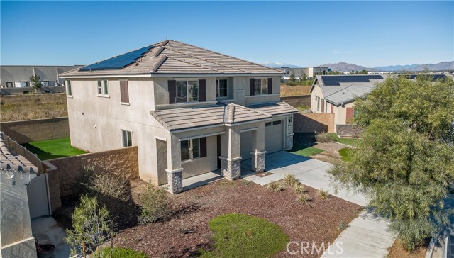 No HOA. One bedroom Downstairs. Newly built. Open living space. Near Lake Perris. The entire home has flooring throughout. This 2,801 sq ft home offers 5 bedrooms, 3 baths, plus a flexible bonus room with potential to become a 6th bedroom. Inside, you’ll find a bright, modern layout with a large open kitchen, upgraded countertops, and generous living and dining areas that feel spacious and inviting. The full bedroom downstairs adds comfort and convenience for guests or multi-generation living. The home also includes leased solar for predictable monthly energy savings. Located in a desirable newer community with wide streets and newer homes, this property delivers space, value, and modern design all in one. And yes, this home sits close to Lake Perris, offering quick access to one of the area's most popular outdoor spots. If you’re looking for size, upgrades, newer construction, and no HOA, this home stands out. Homes like this don’t stay on the market long!