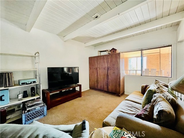 The lower level has its own private entrance, as well as convenient interior access via the staircase. Here you’ll find two additional bedrooms with beamed ceilings and ceiling fans, a full bathroom with tile flooring and a jetted tub, a separate living room, and a laundry room. This space can easily be converted back to a 2-unit home with 2 bedrooms and 1 bath each.
