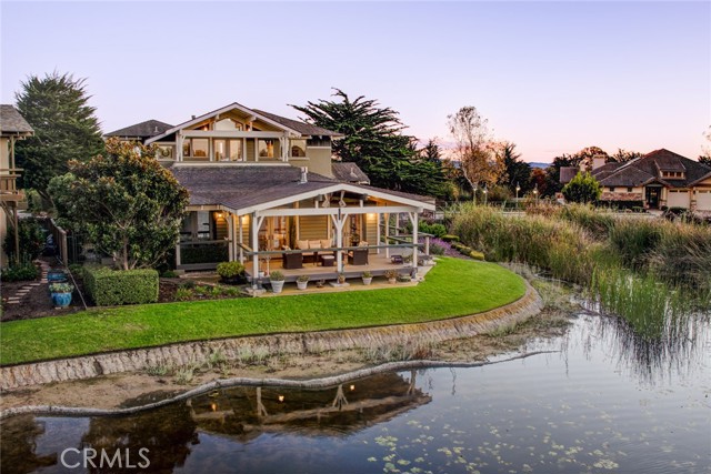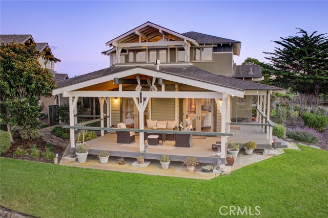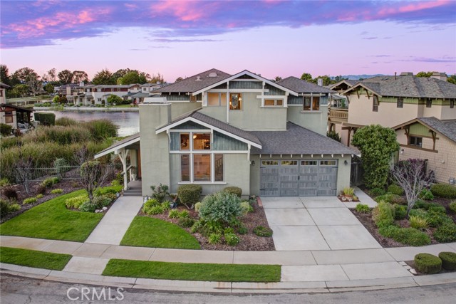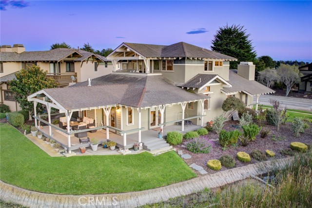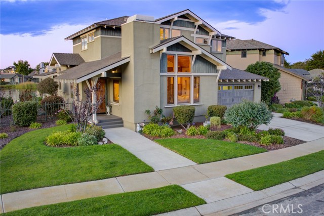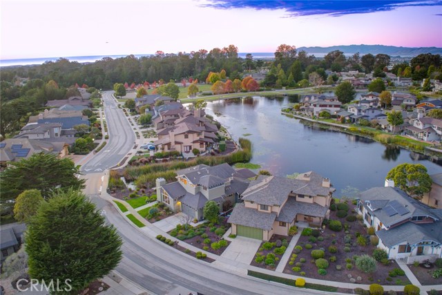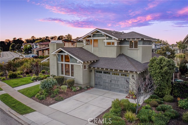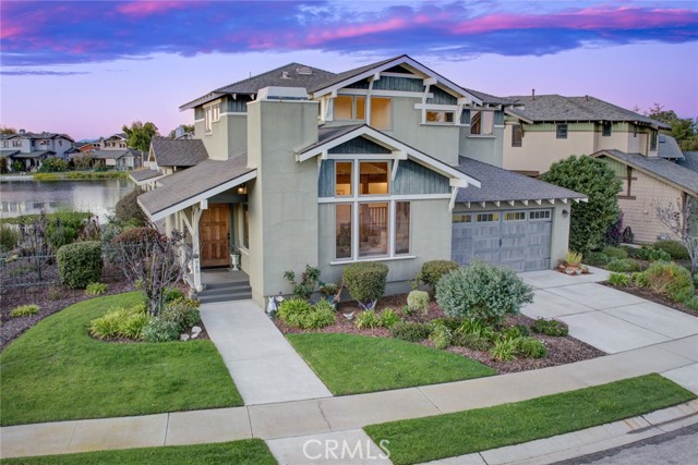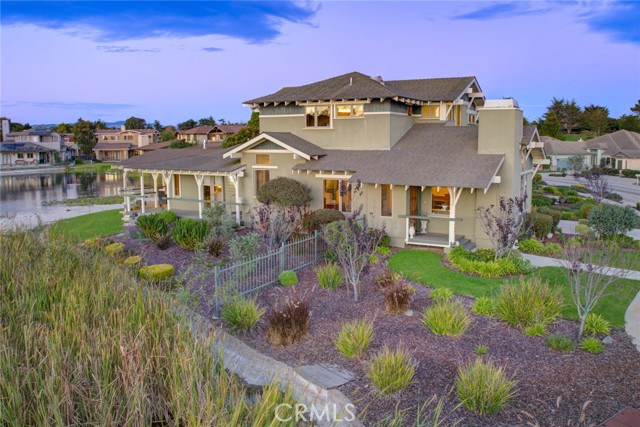 Located in the prestigious gated community of Cypress Ridge, this stunning Craftsman-style home offers true single-level living on the main floor. Set on an a corner lot with peaceful water views, it combines timeless elegance with everyday convenience just minutes from Central Coast beaches and San Luis Obispo. Thoughtfully designed for main-level living, the first floor features all essential spaces—including the spacious primary suite with patio access, a comfortable family room, a formal living and dining room with fireplace, a gourmet kitchen, the laundry room, and direct-access garage. The well-appointed kitchen boasts stainless steel appliances, granite countertops, bar seating, and a wine storage closet, making it ideal for cooking and entertaining. The upper level provides excellent flexibility with two guest suites both complete with en-suite full bathrooms, and a versatile loft, perfect for visitors, hobbies, or a home office. Vaulted pine ceilings, hardwood floors, and abundant natural light enhance the home’s warm, inviting atmosphere, while the wrap-around Trex deck offers the perfect setting to enjoy coastal breeze. Located within a secure gated community, residents can join the Peter Jacobsen–designed golf course, and enjoy scenic Audubon lake, playgrounds, and walking paths—an exceptional combination of refined Craftsman design and effortless Central Coast living.