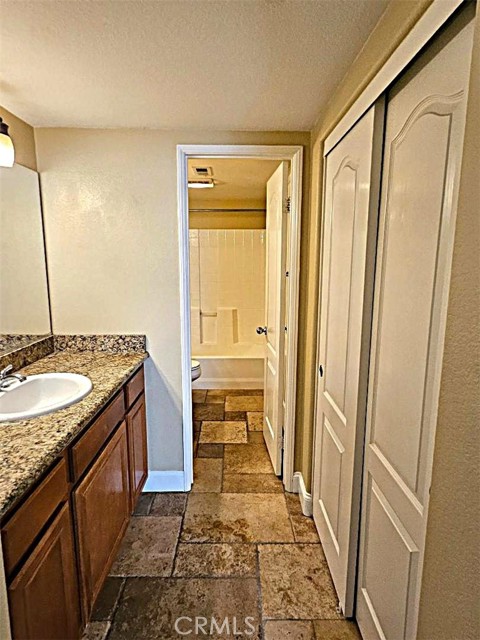Now available in highly sought after Portico at Rancho Carrillo. Beautiful pride of ownership 2 bedroom, 2 bath condominium with high vaulted ceilings for that open air feel. Direct access from the attached two car garage. Amazing stone flooring laid in meticulous versaille style throughout. The hardwood stairs are so beautiful with Spanish tile raisers. The custom wrought iron rails on the staircase were so thoughtfully created and complemented by the custom pot rack hanging above the kitchen sink. The beautiful granite countertops are in the kitchen and throughout the condo. A Wall bookcase cabinet with wine glass holders was built-in to the Den which opens to the concrete deck for relaxing breaks to enjoy the ocean air. The living room boasts a well placed electric fireplace with a cozy flame. On the living area is a Bedroom, Bathroom, Living room, Den, Dining room and kitchen with plenty of cabinet space. Then you can simply ascend a short staircase to the upper floor for privacy to the primary suite. This floor is incredible with its walk in closet, double sink bathroom with tub and shower. Closets in vanity area and nice windows allow the daylight in. On one of those clear days you can peek a boo the ocean view. Located nearby is Leo Carrillo Ranch Historic park, Omni La Costa Spa & Resort, Golf Course,,Batiquitos Lagoon, Hyatt Aviara Four Seasons Resort & Golf Club, and Encinitas Ranch Golf Course . The Ocean is only minutes away ! Please come and experience this home for yourself.