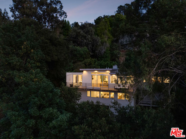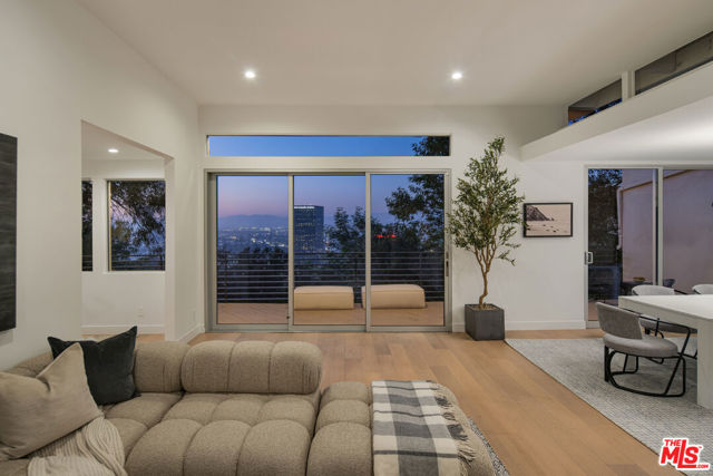 CALLING ALL OFFERS 12/10 at 5PM - Fully Restored Modern Mid-Century home with panoramic views, perched on a tree-lined XL-lot in the prestigious Hollywood Hills, this impeccable masterpiece captures breathtaking city views throughout. Designed by an award-winning team, no detail was overlooked in elevating both form and function. On the main level, discover an airy open floor plan graced with wide plank oak flooring, a soaring double height living room framed by clerestory windows, a dedicated executive office, and a sun filled dining area. The chef's kitchen dazzles with top tier Jenn Air appliances, quartz countertops, and seamless indoor-outdoor flow to an expansive deck ideal for chic entertaining. Two generously sized bedrooms feature abundant closet space, accompanied by a luxurious full bath, a stylish powder room and a large 2 car garage. A level below, the serene master suite commands privacy and refinement including a full walk-in closet and a spa-caliber en-suite designed for relaxation. Set on one of the most coveted streets in the neighborhood, this home offers both privacy and prestige, perfect for the most discerning buyer seeking timeless elegance and modern comfort.