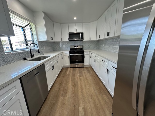 Newly remodeled townhome style apartment building with new vinyl floors, quartz counter tops, tile bathrooms with new washer and dryer for each unit. New electrical, plumbing, heating and air, and water heaters. Each unit has a detached 2 car garage and the ADU has tandem parking. Good location, 17 min to the beach, no traffic 20 min commute to downtown Los Angeles and Orange County accessible. 5 cap