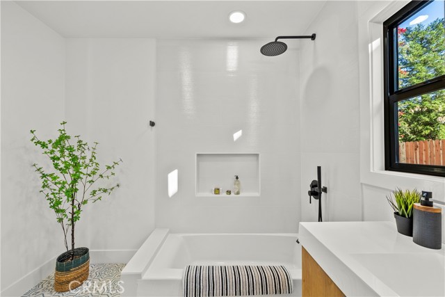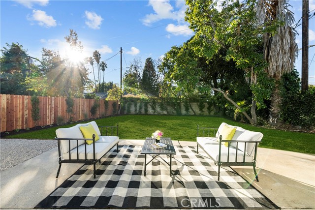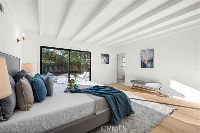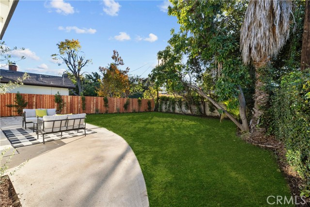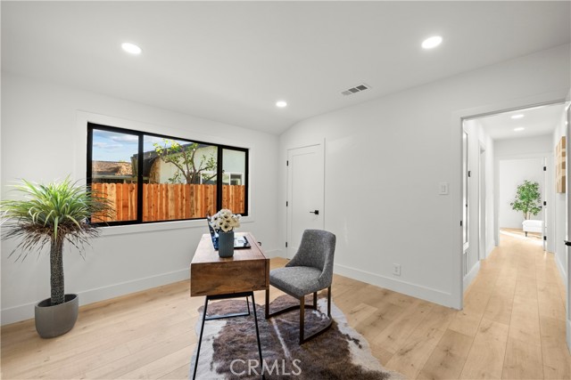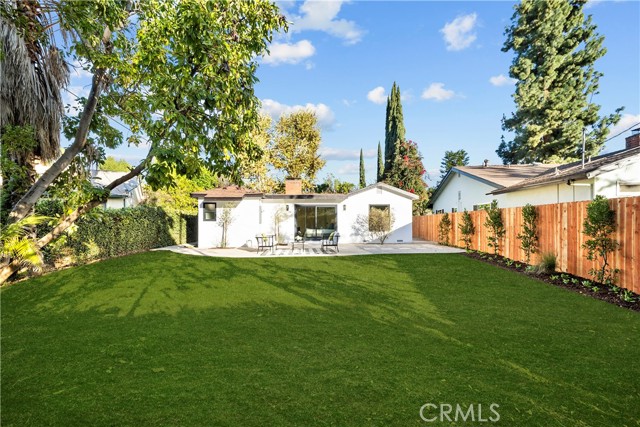 Welcome to this meticulously reimagined Mellenthin home, privately set on a quiet street and thoughtfully redesigned to blend clean modern finishes with a warm, inviting feel, creating an elevated living experience in one of the area’s most coveted pockets. Inside, vaulted ceilings and abundant natural light amplify the openness of the space, while expansive windows frame the living area and give the home a bright, airy presence. The open layout connects the chef’s kitchen with the living and dining areas, creating a seamless setting ideal for gatherings or quiet evenings at home. The spacious primary suite serves as a true retreat, featuring a spa-inspired bathroom with dual vanities, a luxurious walk-in shower, and generous closet space, while a cozy fireplace, wood-beamed ceilings, and calming backyard views through large slider doors enhance the room’s warm, indoor–outdoor feel. Two additional large bedrooms offer flexibility for guests, family, or a home office. The expansive backyard is a private escape, offering a large stretch of lawn and a serene seating area framed by a mix of fruit, olive, and palm trees that create a lush, private backdrop, seamlessly continuing to the manicured front yard where curated landscaping and an extended driveway elevate the home’s curb appeal. Set in one of Valley Glen’s most desirable neighborhoods, this home delivers a refined blend of comfort, style, and modern living.