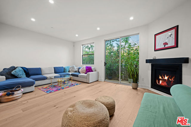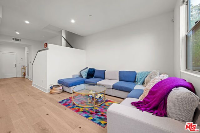 Contemporary townhouse built in 2011, located in an intimate 6-unit building in the heart of Beverly Grove an unbeatable location with a Walk Score of 94. This home is truly a neighborhood gem, offering modern luxury, high-end amenities, and timeless charm. This 3BR + office, 2.5BA residence has it all: a sleek modern kitchen with Viking range and quartz stone counters, an open floor plan with wide-plank white oak floors, and a cozy bar/den area perfect for entertaining. The primary suite features dramatic 20-foot ceilings and an en-suite bathroom with dual sinks, separate soaking tub, and shower. Two additional bedrooms are conveniently located on the same level, along with a second full bath and washer/dryer. Upstairs, a loft/office leads to an expansive 600+ sq ft private rooftop deck equipped with custom lighting, sound system, upgraded flooring, BBQ, fridge, dining area, gas firepit, outdoor movie theater with high-definition projector, and updated internet connectivity plus incredible views of the Hollywood Hills. The home has been recently finely remodeled with new hardwood floors replacing prior carpet and energy-efficient LED lighting throughout. Set in a highly walkable neighborhood, you can enjoy shopping, dining, errands, local parks, and vibrant cafes all just seconds away. Friendly neighbors and a strong community vibe make this home not just beautiful, but truly welcoming. Don't miss this exceptional opportunity to experience modern comfort, style, and convenience in one of LA's most desirable locations.