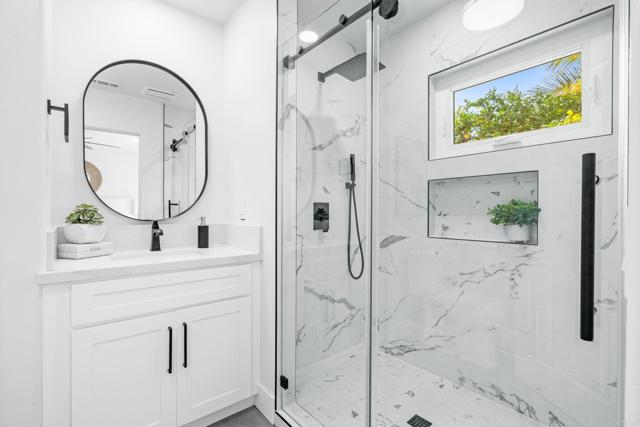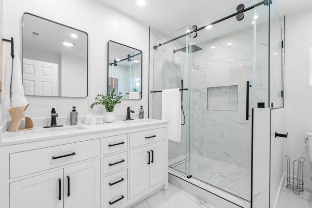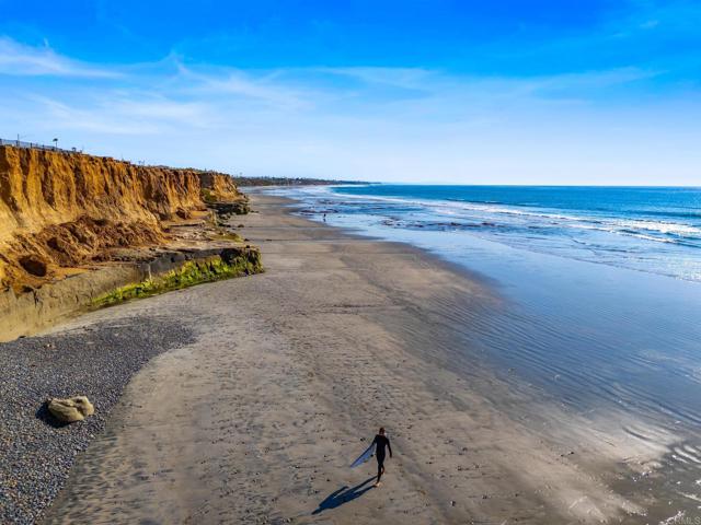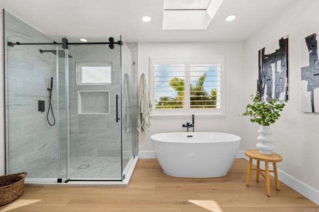Experience coastal living at its finest in this newly renovated custom home in Terramar, where sweeping ocean views set the tone from sunrise to sunset. Thoughtfully reimagined with modern finishes and timeless style, this rare Single Family Residence offers exceptional flexibility for multi-generational living, guest quarters, or income potential. Designed to function as one home or two distinct units, the upper level features a bright 2-bed/1-bath layout with an ocean-view great room and beautifully updated full kitchen. The lower level lives as a spacious 3-bed/2-bath suite with its own full kitchen, generous living area, and separate entrance—ideal for extended stays or additional privacy. Loads of parking, abundant fruit trees, Owned Solar, easy care yards, and accessible roof to add an incredible 360-degree view rooftop deck. Exceptional Carlsbad School District. Three minutes to the I-5 and a quick e-bike ride to the Village. Private Beach Club access available to Terramar residents (ask for details). Wide-open sightlines to the blue Pacific, an inviting indoor/outdoor flow, and a coveted Terramar location create a lifestyle that feels relaxed, refined, and close to everything Carlsbad offers. This is a one-of-a-kind beach property with uncommon versatility and unforgettable views.