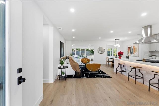 Nestled in the coveted Mount Streets of Clairemont, this beautifully remodeled 3 bedroom 3 bath single-story impresses with a bright, airy layout and a cohesive blend of modern finishes. Luxury vinyl plank flooring, recessed lighting, dual-pane windows, and a new insulated garage door create an inviting ambiance throughout. The designer kitchen showcases custom cabinetry, quartz countertops, an expansive center island, stainless steel appliances including a sleek hood, and a striking tile backsplash—all anchored by abundant storage and a fully upgraded 200-amp electrical panel. The spacious primary suite offers a generous walk-in closet, and a spa-caliber ensuite featuring dual vanity sinks, a luxurious tiled walk-in shower with glass enclosure, and sophisticated designer finishes. Additional highlights include central air and heat, ceiling fans, mirrored closet doors, three fully updated bathrooms, a sun-filled lanai/sunroom, and extensive garage ceiling storage. Outdoor living shines with new drought-tolerant landscaping, turf, upgraded yard drains, and a beautifully maintained backyard ideal for entertaining, complete with a custom patio and BBQ area. A two-car attached garage adds everyday convenience. Perfectly situated just steps from Mt. Acadia Neighborhood Park and close to local schools, this exceptional home offers unmatched accessibility to Target, Home Depot, popular dining, neighborhood shops, major freeways, and San Diego’s iconic beaches. A true turnkey gem in the heart of Clairemont.