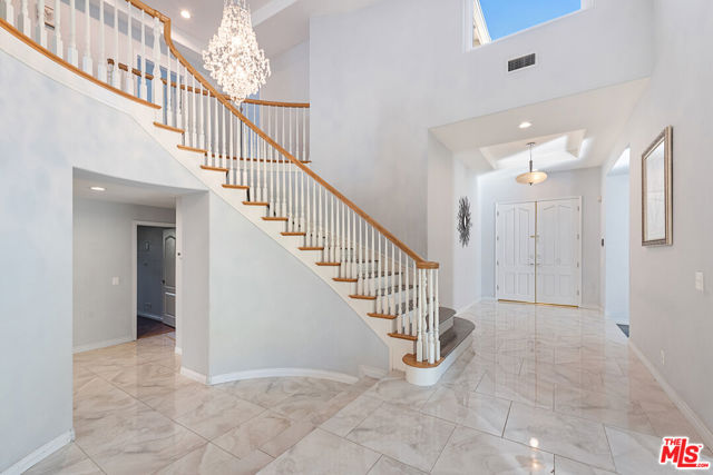 Welcome to 24310 Belford Ct a rare Monte Vista gem offering privacy, elegance, and sweeping natural beauty. Set on an extraordinary 2+ acre cul-de-sac lot, this distinguished 5-bedroom, 4.5-bath Mediterranean estate style home delivers over 4,400 sq ft of refined living space (per assessor) with unobstructed views of rolling hills, mature trees, and the peaceful wide-open spaces typically reserved for true country estates. Step inside to discover craftsmanship and comfort at every turn. A romantic winding staircase, high ceilings, and French doors set a tone of timeless sophistication. The gourmet kitchen is a chef's delight, featuring granite countertops, abundant cabinetry, a center island, tile floors, and a charming breakfast area that invites relaxed mornings. The home includes a private study, a downstairs bedroom ideal for guests or multigenerational living, and three fireplaces that warm the formal and casual spaces with ambiance. The spacious master suite is a luxurious retreat with private view balcony, and a spa-inspired bath with dual vanities, soaking tub, and separate shower. Outdoor living is equally impressive. Enjoy two patios with stone ribbons, a built-in BBQ, and idyllic vistas perfect for quiet evenings or entertaining under the California sky. Additional highlights include one wet bar, wood blinds and shutters, ample closet space, an indoor laundry room with a sink for convenience, and EV Charger for Electric vehicles. Built in 1994, this is more than a home it's a sanctuary. Experience commanding views, unmatched privacy, and a lifestyle of elevated comfort in one of West Hills' most coveted enclaves.
