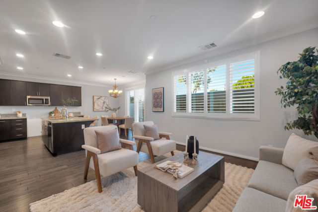 Hidden Gem! Built in 2016, this very rare 3-bedroom, 3-bath townhouse-style condo with no shared walls lives like a single-family home offering sophistication, modern comfort, and an unbeatable Valley location without the million-dollar price tag.Enter through a grand two-story foyer into a beautifully designed living space that effortlessly blends style and function. The expansive kitchen features abundant cabinetry, a large island with breakfast bar, and an intuitive layout that naturally connects to the dining and living areas perfect for entertaining or relaxed family living. Sliding doors open to a private patio, creating a seamless indoor-outdoor flow for summer evenings, alfresco dining, or quiet morning coffee.The garage connects directly to the kitchen, making everyday routines effortless. Upstairs, all three bedrooms are thoughtfully arranged alongside a convenient laundry room and linen cabinet. The primary suite impresses with a generous bedroom, walk-in closet, and spa-inspired bathroom, while the additional bedrooms provide ideal space for family, guests, or a home office.Custom shutters throughout enhance the home's timeless appeal, while low-maintenance living is complemented by a community offering exceptional amenities: sparkling pool, BBQ area, outdoor shower, guest bathrooms, playground, and ample guest parking. A security gate is scheduled for installation in 2026, ensuring both peace of mind and a welcoming, family-friendly environment.Located on the cusp of Northridge, you enjoy immediate access to the mall, theaters, dining, shopping, schools, places of worship, and major freeways combining convenience with lifestyle. With interest rates recently shifting, this move-in ready condo presents an extraordinary opportunity to secure a sophisticated home at exceptional value.Offering both immediate comfort and optional value-add potential, this property allows b