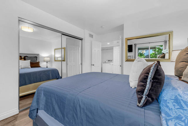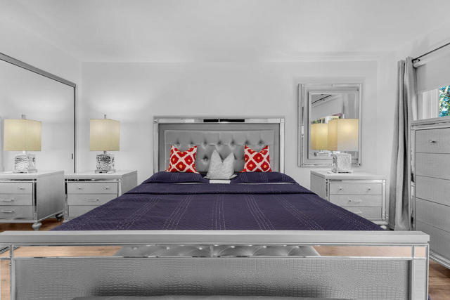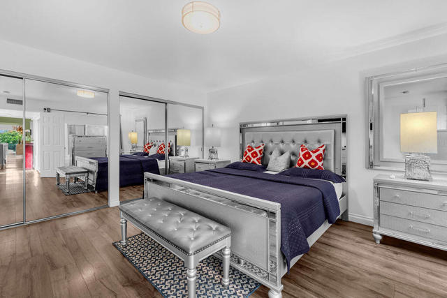 Set within the sought after South Palm Desert enclave of Sommerset, this striking end unit residence showcases refined contemporary design and exceptional craftsmanship throughout. Thoughtfully reimagined with enduring contemporary design, the home spans approximately 1,428 square feet with two bedrooms and two beautifully appointed baths, offering sweeping valley and mountain views from multiple vantage points.The open concept layout seamlessly connects the living, dining, and kitchen spaces, creating an ideal setting for both relaxed living and effortless entertaining. Expansive windows fill the interior with natural light, enhancing the clean lines and modern aesthetic. The kitchen is finished with granite countertops, stainless steel appliances, a gas range, and crisp white cabinetry with soft close drawers, complemented by a convenient breakfast bar.The primary suite is a private retreat featuring a sleek vanity and an oversized, elegantly tiled walk in shower. Additional highlights include dual pane windows, updated window treatments, fresh interior paint, wood look flooring throughout, and energy efficient heating and cooling systems. Three distinct outdoor seating areas invite you to take in the surrounding scenery and embrace the indoor outdoor lifestyle the desert is known for.Offered completely turnkey furnished, this modern desert residence allows for immediate enjoyment as a full time home, seasonal retreat, or desert getaway. A full two car garage adds everyday convenience, while the community offers multiple pools, a spa, pickleball and tennis courts. Ideally located near the renowned shopping and dining of El Paseo, this residence delivers elevated living in one of Palm Desert's most desirable communities.