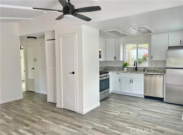 Inside, the home lives large with an open-concept floor plan filled with natural light. The kitchen and living room are positioned to capture stunning views, creating a seamless indoor-outdoor flow ideal for hosting and enjoying Southern California living. The interior and exterior were professionally repainted just a few years ago, and at the same time the kitchen and bathrooms were fully remodeled with thoughtful, modern upgrades. The kitchen features new LED lighting with adjustable color temperatures, while the primary bathroom entry was enhanced with a custom barn door for both style and function. Additional improvements include dual-pane windows, a newer water heater, updated heating ducting, and the removal of the sliding glass door in the main bedroom for added security.