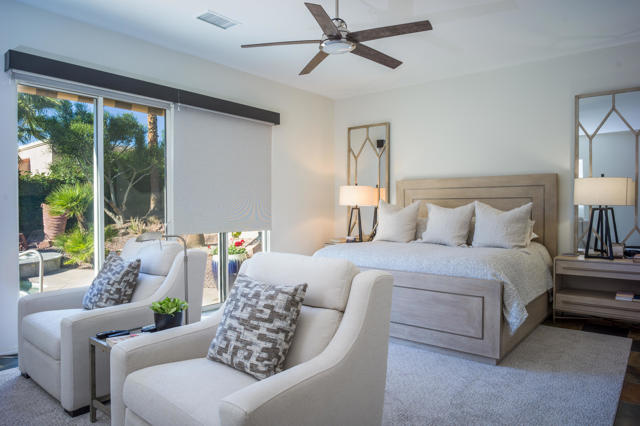 Property includes a BMW Sports Car with the right offer! Welcome to refined desert living in the prestigious, gated enclave of St. Augustine in Rancho Mirage--a newer, impeccably appointed residence designed for both sophisticated entertaining and effortless everyday comfort. Perfectly positioned on a slightly elevated lot, this exceptional home overlooks a lush, park-like greenbelt, creating a sense of privacy, openness, and serene beauty rarely found.Spanning over 3,100 square feet, this 4-bedroom, 41/2-bath home showcases a spacious great room floor plan ideal for gatherings large and small. Soaring ceilings, expansive living areas, and elegant tile flooring throughout set a modern yet warm tone, while a stylish fireplace anchors the space. Power blinds provide seamless control of light and ambiance, enhancing both comfort and convenience.Designed as a true entertainer's retreat, the home flows effortlessly from indoors to outdoors. Step outside to your private desert oasis featuring an amazing pool and cascading waterfall spa, perfectly framed by panoramic mountain views. Whether hosting sunset cocktail parties or enjoying tranquil mornings poolside, this backyard delivers the quintessential Rancho Mirage lifestyle.Imagine escaping the snow, ice, and bitter cold of the snow-belt states and embracing endless sunshine, blue skies, and warm desert days. Rancho Mirage offers year-round resort-style living, where winter coats are replaced by golf shirts and poolside afternoons become the norm.Each bedroom offers ensuite comfort, ideal for hosting guests or accommodating family with privacy and ease. The home's thoughtful layout balances openness with intimate spaces, making it equally suited for full-time living or a luxurious desert getaway.Located in the heart of Rancho Mirage, this home places you moments from world-class golf, fine dining, upscale shopping, and cultural attractions--truly a jet-setter's paradise. The two-car garage plus bonus golf cart garage adds convenience for both recreation and storage.Offered turnkey furnished, this residence is ready for immediate enjoyment and includes high-end furniture, decor, dishes, and linens--just bring your suitcase and start living the desert dream.Elegant, elevated, and effortlessly stylish, this exceptional St. Augustine home represents the best of modern Rancho Mirage living.Make this your oasis under palm trees!