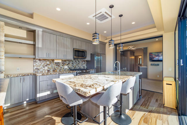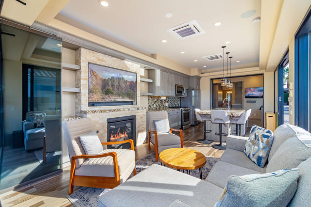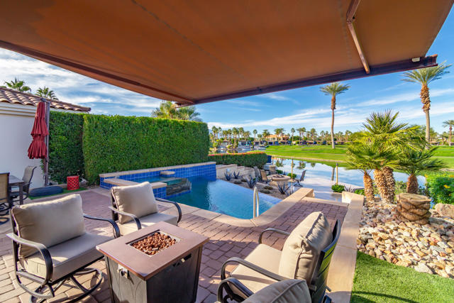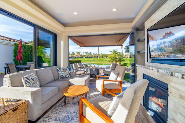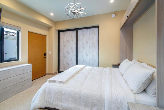 Located on Motorcoach Country Club's main canal, Lot 204 is a beautifully developed water lot offering expansive water, golf course, and mountain views paired with a highly functional and thoughtfully redesigned layout. This lot stands out for its unique guest suite configuration, offering a level of versatility and usability not commonly found within the resort.The casita was seamlessly combined with the shade structure to create a true guest suite featuring a king-size Murphy bed, generous storage, a full bathroom with tiled walk-in shower, and a washer and dryer. When the bed is stowed, the space converts easily for entertaining with dining for six plus additional bar seating. Updated cabinetry, countertops, and newer appliances enhance everyday comfort, and the casita is offered fully furnished for a turnkey experience.Outdoors, enjoy resort-style living with a private pool and spa, built-in fire pit, and a striking waterfall feature. Significant mechanical upgrades include a high-capacity 400,000 BTU pool/spa heater, updated pump and filtration systems, and remote pool controls. The CoverGlass door system fully stacks open to maximize views and indoor-outdoor living, while oversized awnings and exterior shades provide seasonal comfort. The driveway, deck, and hardscape areas have been recently refinished and resealed, and upgraded landscaping with timed lighting enhances evening ambiance. A tile-finished dock completes the canal-side setting.Lot 204 offers a compelling combination of views, functionality, and recent upgrades in one of MCC's most desirable canal locations.Motorcoach Country Club exclusively accommodates Class A motorhomes from 30' to 45'. Due to zoning, on-site properties are not considered dwellings, and overnight stays inside them are not allowed.