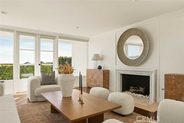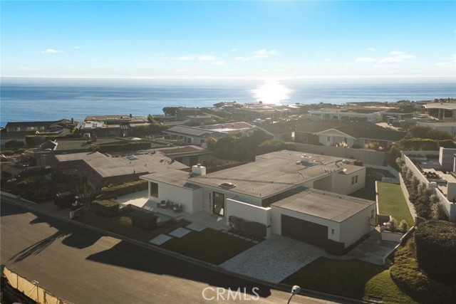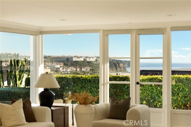 As waves break along Salt Creek Beach, evening lights shimmer after sunset and coastal bluffs rise to the summit of the towering Dana Point Headlands, all you have to do is relax and enjoy the views at this spacious single-level Midcentury Modern home in Dana Point’s guard-gated Monarch Bay. Floor-to-ceiling windows and French doors welcome natural light and frame ocean views from most living areas. A formal entry with skylight leads to a living room that presents sit-down ocean and Headland views and a fireplace with custom marble surround while a formal dining room hosts a private patio, creating the ideal ambiance for elevated entertaining. Opening to two patios, the family room is bright, airy and warmed by a period-perfect wood-burning fireplace. A convenient pass-thru to the family room is just one of the amenities that awaits in the kitchen. Enjoy a nook with bay window, white cabinetry, stone countertops, marble backsplash, ample pantry storage, and top-tier appliances including a built-in refrigerator and an under-counter beverage refrigerator. Approximately 3,262 square feet, the three-bedroom, three- and one-half-bath design reveals understated sophistication with a soft white color palette that harmonizes with wood, stone and tile flooring, designer lighting fixtures, 11' ceilings and subdued millwork including crown molding and wall panels. A two-car garage and dual-zone air-conditioning are also featured. Manicured grounds extend nearly 11,305 square feet, offering room for future expansion of the home if desired. A patio wraps around the front of the residence, the side yard includes bocce ball and a putting green, and a private view courtyard displays an in-ground spa and generous patio space for entertaining. Monarch Bay, renowned as one of Southern California’s most sought-after oceanfront enclaves, offers residents access to the world-class amenities of its Monarch Bay Beach Club. Experience on-the-sand umbrella and beach-towel butler service, volleyball and oceanfront dining. A dog park, private tennis and pickleball courts, and beach fire pits are also included, and there are no HOA dues. Dana Point’s harbor, Laguna Beach, The Ritz-Carlton, and coastal trails and premium golf are moments from home.