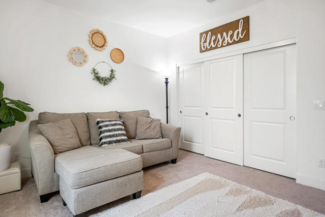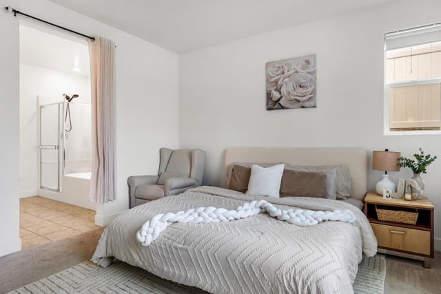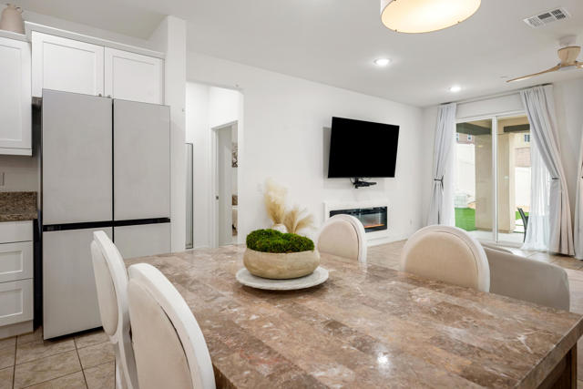 Welcome to this beautifully upgraded single-story home, thoughtfully designed for comfort, functionality, and modern living. Offering 3 bedrooms and 2 bathrooms, the home features an inviting open-concept layout ideal for both everyday living and effortless entertaining. Tasteful finishes and carefully curated upgrades create a cohesive and welcoming atmosphere throughout.The living area is anchored by a custom modern electric fireplace with heat, that adds warmth and architectural interest, while the primary suite is enhanced by a custom walk-in closet offering storage and organization. A spacious side yard provides rare flexibility, with the potential to accommodate a third parking space--an exceptional convenience.Tucked away on a peaceful cul-de-sac with no rear neighbors, the property enjoys enhanced privacy and a peaceful setting. The backyard is finished with premium, pet-friendly, heat-resistant turf that remains cool underfoot, even in warmer temperatures.Perfect for relaxing, entertaining, or enjoying quiet evenings at home, the outdoor area serves as a serene extension of the living space. Located in a well-maintained and desirable community, this home offers an ideal blend of style, comfort, and convenience. A wonderful opportunity not to be missed!