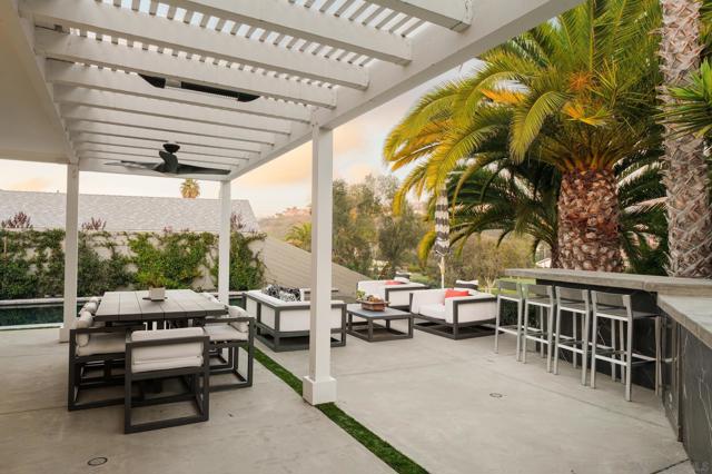Front-row on the iconic Champions Course at Omni La Costa, this striking single-story estate is set on a premier lot overlooking the 3rd hole. Spanning 3,720 square feet with 5 bedrooms and 3.5 bathrooms, the home offers a resort-style backyard with a brand-new infinity-edge pool and spa, plus a fully equipped outdoor kitchen. Expansive golf course and hillside views provide a stunning backdrop, while the open living and kitchen areas flow seamlessly to the outdoors, creating truly effortless indoor-outdoor living. A stunning glass atrium floods the home with natural light, emphasizing mid-century modern elegance and relaxed coastal style. Highlights include soaring columns, expansive walls of glass, 14-foot leaded entry doors, a private interior courtyard, and solar. Steeped in history and rumored to have hosted Old Hollywood legends including the Rat Pack, Lucille Ball, and Clint Eastwood, the home blends timeless charm with modern luxury. The chef’s kitchen, featuring quartz countertops, white shaker cabinetry, stainless steel appliances, and wine storage, opens to the open living space with sweeping golf course views, a custom bar, and fireplace - making this a truly special home in one of La Costa’s most sought-after neighborhoods.
