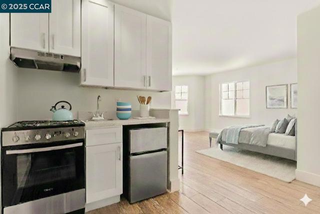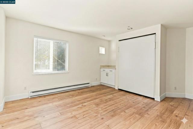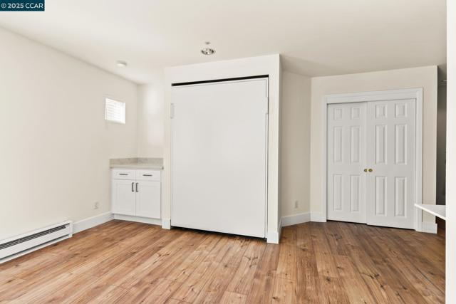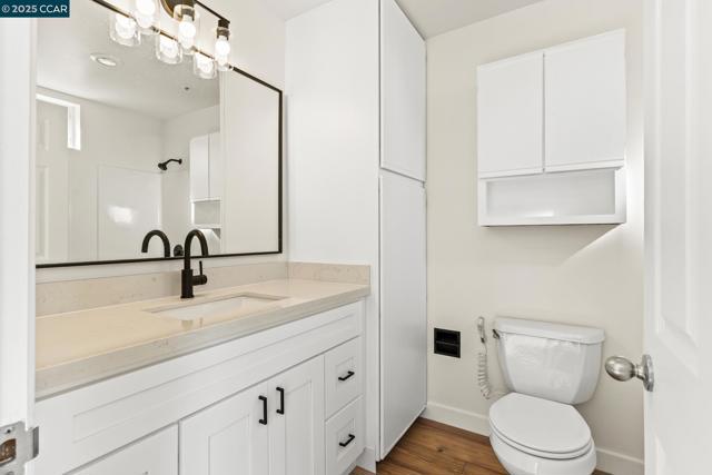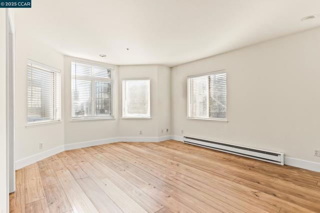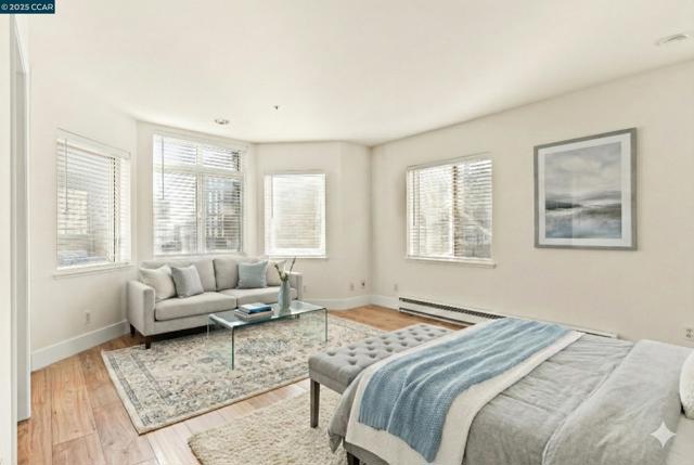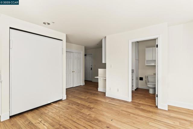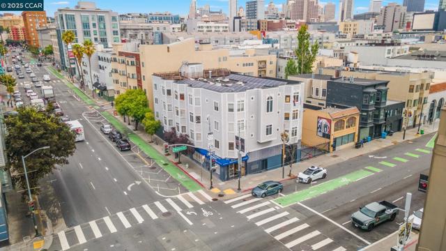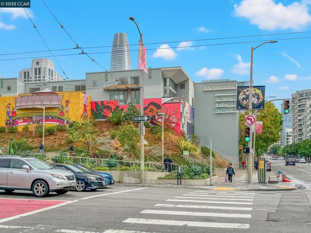 Prime corner studio located at the vibrant intersection of 7th and Howard, directly above the iconic Tony Baloney's. This 1991-built residence offers an immersive city vibe with large windows that maximize natural light. The 341 sqft interior is fully renovated with new luxury vinyl plank flooring and fresh paint throughout. A built-in Murphy bed system optimizes the layout and usable space. The kitchen features new quartz counters, new white shaker cabinetry, and all new stainless steel appliances. The bath is updated with a new vanity and matte black hardware. Includes a deeded storage locker (fits bikes/gear) and access to a common roof deck with panoramic views. Laundry on floor. A "Walker’s Paradise" near Civic Center, BART, and tech HQs. This is not a BMR.