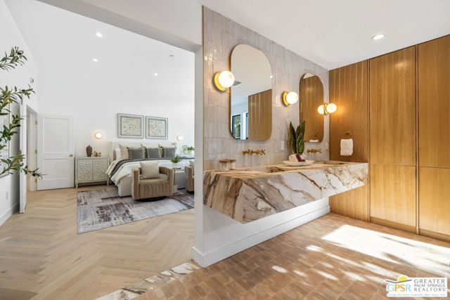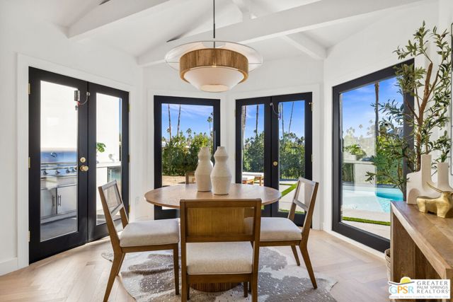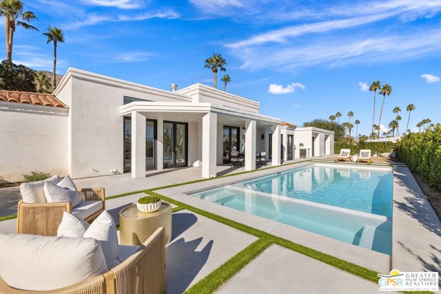 A rare blend of architectural scale, designer finishes, and panoramic golf-and-mountain views, this extensively renovated 4 bed, 4.5 bath showcase residence is ideally positioned along the 6th hole of the North Course at Indian Canyons Golf Resort. Thoughtfully reimagined from top to bottom, the home offers tall ceilings, an open floor plan, and dramatic sightlines capturing Mount San Jacinto to the west and sweeping fairway views of the 6th and 7th holes to the east. The attention to detail, paired with 360-degree mountain vistas, creates a home that truly brings home the trophy. A striking formal entry sets the tone, revealing a refined material palette highlighted by herringbone wood and tile flooring, custom cabinetry, quartz countertops, and porcelain slab accent walls in the spa-inspired baths. The design is fresh, cohesive, and publication-worthy. At the heart of the home is a light-filled gourmet kitchen offering pool, fairway, and mountain views, a large detached island, Fisher & Paykel appliance suite, casual dining area, and seamless flow to both the living room with fireplace and the east-facing backyard. The kitchen also connects effortlessly to the west-facing formal dining room, creating a flexible and elegant entertaining layout. Four private ensuite bedrooms (two on the north side of the home and two on the south) each enjoy incredible views and beautifully appointed baths. A powder bath, inside laundry with sink, and attached three-car garage. Outdoor living is equally compelling. The front of the home features a welcoming seating area with premier Mount San Jacinto views, while the backyard delivers true resort-style living with a private pool and spa, gas fire pit, built-in BBQ, and sweeping fairway and mountain vistas. Recent structural and system upgrades include a newly installed roof, dual HVAC units, tankless water heater, updated pool and spa equipment, and extensive electrical and plumbing improvements. Just minutes from world-class hiking and downtown Palm Springs, the property qualifies for a Vacation Rental Certificate offering exceptional flexibility as a full-time residence, second home, or short-term rental investment. Stunning and ready to go!