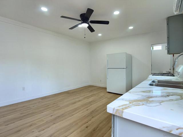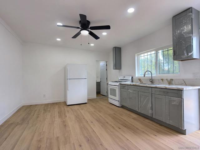 Beautifully remodeled 3-bedroom, 2-bath home featuring a spacious master suite. This property has been extensively upgraded, offering brand-new flooring throughout, a fully renovated kitchen with new cabinetry, fresh interior and exterior paint, and multiple modern enhancements that create a clean and contemporary living environment. The home includes a large backyard, perfect for outdoor activities, entertaining, gardening, or future improvements. Conveniently located near shopping, dining, schools, and major freeways, this residence provides exceptional comfort and accessibility. No HOA fees. Move-in ready. Additionally, the garage has been converted into an Accessory Dwelling Unit (ADU), currently not permitted, bringing the total estimated living area to approximately 1,664 sq. ft., including about 600 sq. ft. of newly added space (per seller). The ADU features its own private entrance, separate bedroom, family room, kitchen area, and full bathroom—ideal for extended family, guests, or potential rental income.