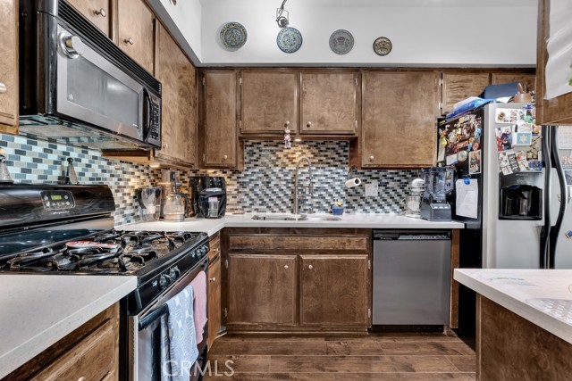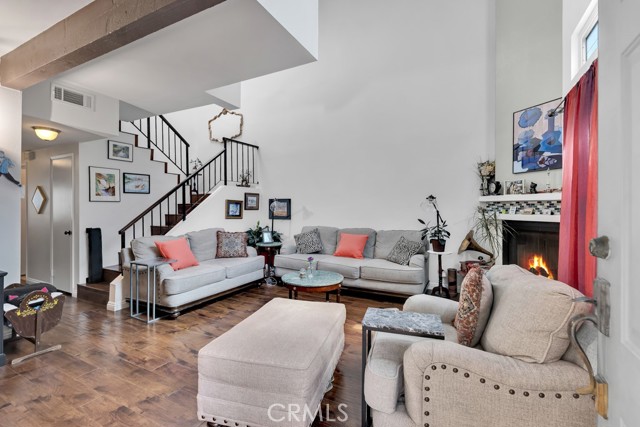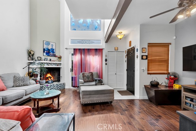 Step into this stylishly updated Tarzana townhouse, where an open-concept living space is highlighted by soaring cathedral ceilings and a warm, inviting fireplace. Thoughtfully remodeled, the home features sleek laminate flooring throughout, double-pane soundproof windows for added comfort and tranquility, and a dedicated dining area ideal for entertaining. The contemporary kitchen is outfitted with stainless steel appliances, quartz countertops, a mosaic glass backsplash, under-cabinet lighting, and custom ceiling fixtures, seamlessly blending function and design. Upstairs, two spacious en-suite bedrooms offer privacy and comfort, along with a convenient laundry area complete with a high-efficiency front-load washer and dryer. Additional highlights include ample storage, central air and heat, and a charming patio just off the living room, perfect for indoor-outdoor living. The property is located within a secure, well-maintained building featuring the ButterflyMX smart intercom system for seamless phone-based access, plus side-by-side parking in a gated garage and guest parking. Ideally situated between Encino and Woodland Hills, the home is directly across from a park and Starbucks, with Ventura Boulevard, Westfield Topanga, and the new Rams Village just minutes away—offering endless shopping, dining, and entertainment options. This is a fantastic opportunity not to be missed; schedule your private showing today.