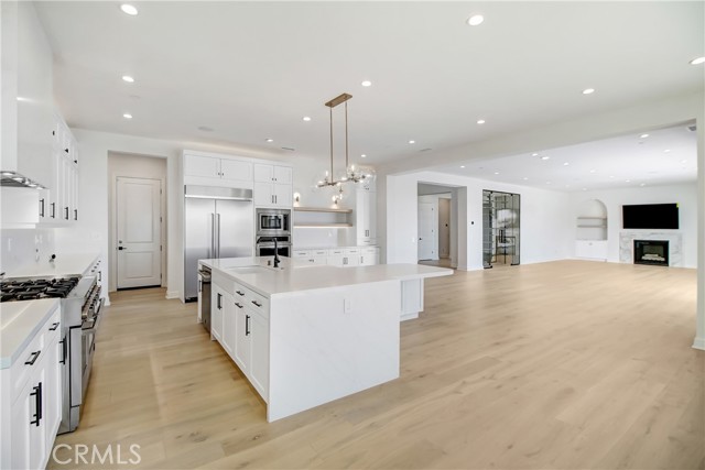 Step into the pinnacle of executive and luxury in this 2022 Toll Brothers estate, fully reimagined and meticulously redesigned with bespoke finishes—far beyond builder-grade—where sweeping views, resort-style living, and unparalleled craftsmanship converge in Porter Ranch’s most prestigious guard-gated enclave. This 5,464 sq ft estate on an expansive 12,756 sq ft lot features 5 bedrooms and 6 bathrooms, including a grand double-door foyer that opens to a formal living room with fireplace, a private cinema, a temperature-controlled wine cellar, and a full downstairs en-suite—perfectly designed for guests or multigenerational living. The chef's kitchen is equipped with upgraded appliances, and a dedicated laundry room with washer and dryer is conveniently located on the second level. The expansive primary suite is expansive with a lounge area with kitchenette and full bedroom for resting, it truly serves as a serene retreat with blackout roller shades, abundant natural light, and sweeping views of the San Fernando Mountains and Los Angeles cityscape. Every bedroom and bathroom has been thoughtfully customized with high-end finishes, bespoke cabinetry, and refined materials, ensuring interiors that are far beyond builder-grade. Seamless indoor-outdoor living is at the heart of the property, with resort-style grounds featuring an in-ground swimming pool with swim-up bar, raised spa, outdoor kitchen and BBQ, covered California room, Alumawood patio cover, and expansive Fleetwood sliding doors connecting the indoor spaces to the outdoor oasis—perfect for entertaining or everyday luxury. Designed for elevated entertainment and lifestyle, the home offers formal living areas, a private cinema, a wine cellar, and a downstairs en-suite that provides ultimate flexibility for hosting, relaxing, or working from home. Additional highlights include a finished 2-car garage plus a separate 1-car garage with direct interior access. Ideally located minutes from Sierra Canyon School (K–12) and close to top-tier shopping, dining, hospitals, and the 118 Freeway, this estate provides an unmatched combination of privacy, convenience, and connectivity. Situated in Westcliffe, Porter Ranch’s most prestigious 24-hour guard-gated enclave built by Toll Brothers, this residence delivers security, discretion, and elevated living at its finest.