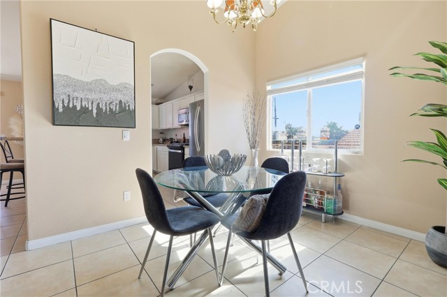 Step inside to a high ceiling living room filled with natural light, creating a bright and inviting atmosphere. The open living and dining areas flow seamlessly, making the space ideal for entertaining or everyday living.