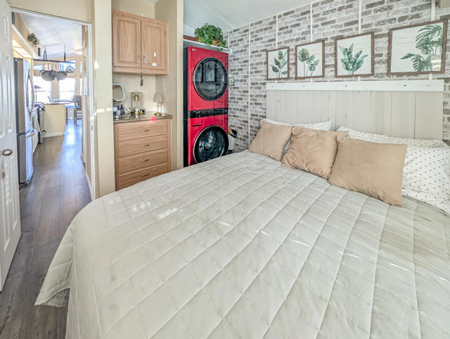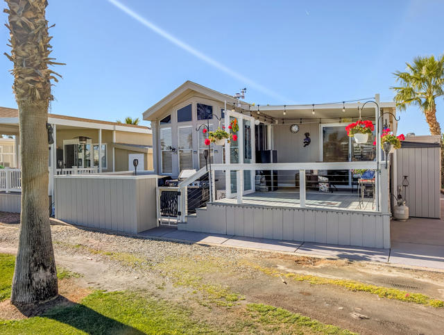 Dreams do come true with this immaculate showstopper! Here we have a 2000 Fleetwood Park Model with ~550 sq. ft., 2 bed, 1 bath, washer/dryer, and so many stunning features including high volume ceilings creating a very open feel, fireplace, laminate flooring, master bedroom upgrade, dishwasher, disposal, custom blinds and more. Covered carport, 3 sheds for maximum storage. Out front magnificent views of Mt. San Jacinto, step out back onto the windless, 2-tiered covered deck and take in the scenery of the highly coveted 4th hole of the golf course along with the gorgeous ponds and hills in the backdrop! You will never want to leave this peaceful and serene getaway. Caliente Springs is a premiere 55+ luxury Resort with amenities to make you feel like a VIP, mineral fed hot spring pool and spas, 9-hole golf course, water ball, water aerobics classes, yoga, 8-pickleball courts, tennis courts and so much more in this fun and active community. Lot is not owned; space rent is $950.