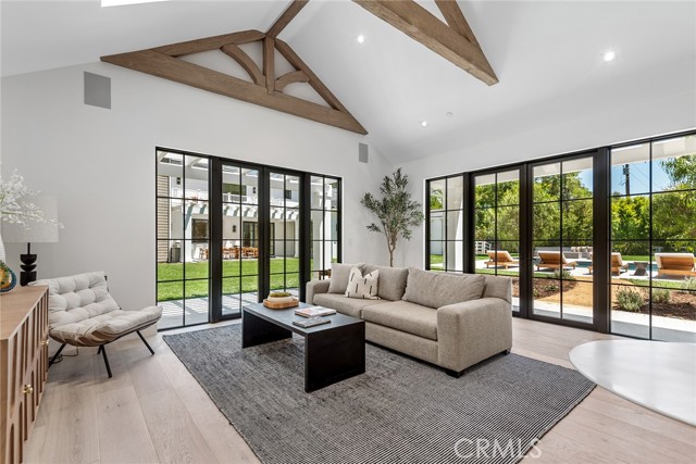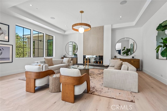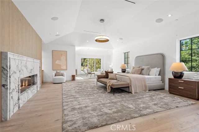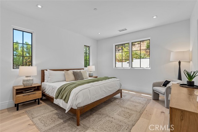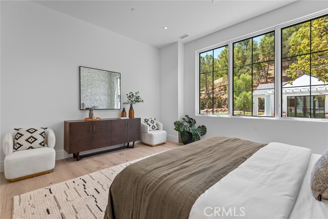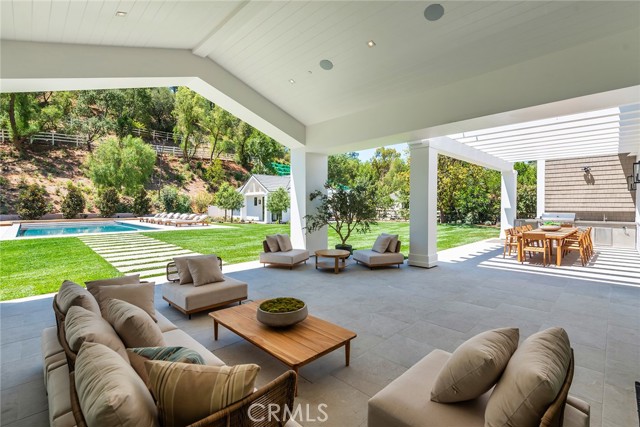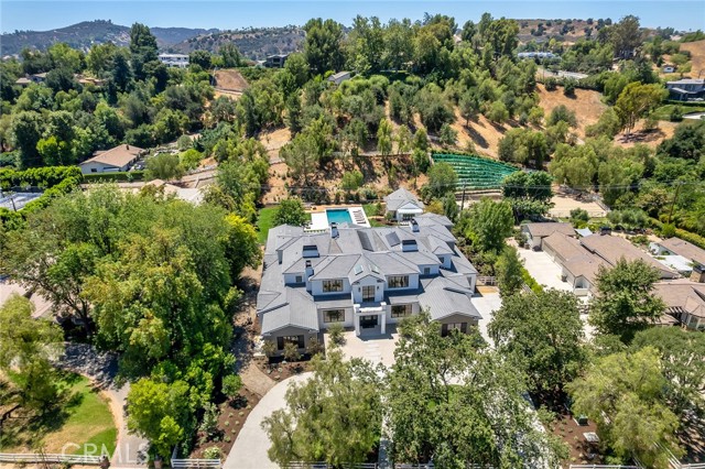 This brand new, just completed, and absolutely gorgeous estate is nestled on a beautiful, lushly landscaped 1.4 acre lot. This home exemplifies the essence of the relaxed, indoor/outdoor California lifestyle and features luxury, elegance and excellent quality throughout. Bathed in natural light, and spanning 16,215' (including the 931' guest house), the spacious, open floor plan is highlighted by a restaurant quality chef’s kitchen with two islands, one with countertop seating, plus a big breakfast room, all opening to the large family room with sliding walls of glass, two-sided fireplace & adjoining lounge/game room with wet bar. Additional amenities include a spacious formal dining room with refrigerated wine wall, adjoining butler's pantry, large private office with built-in custom cabinetry, stunning home theater with fabric covered acoustic sound walls, and a big gym & spa complete with steam shower, sauna, and sliding walls of glass opening to the rear grounds. There are six generous en suite bedrooms, four upstairs and two on the main floor. The superb primary suite includes a retreat, fireplace, deluxe bath with dual showers, big soaking tub, enormous, room sized custom closets, and a large private balcony overlooking the large backyard. The spacious grounds include a picturesque guest house, sparkling pool with large Baja shelf, family size spa, large covered patio, full barbecue center, a firepit with seating area, expansive grass lawns, mature trees, a circular driveway, and garages for four cars with gleaming epoxy floors. The home is also located on one of Hidden Hills' most popular streets, with just a short walk to the community center with tennis courts, pool, and recreation room. It is also close to the highly regarded public & private schools, and the nearby, Commons shopping center.