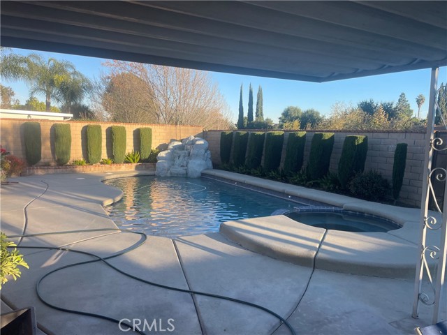 a nice sized, semiprivate lot with a beautiful backyard surrounded by a block wall. It includes a covered patio, heated pool/inground spa and backs to Hickory Creek Park. The home has a nice floor plan with a fireplace in the living room. Home provides easy access to shopping, dining, and freeways