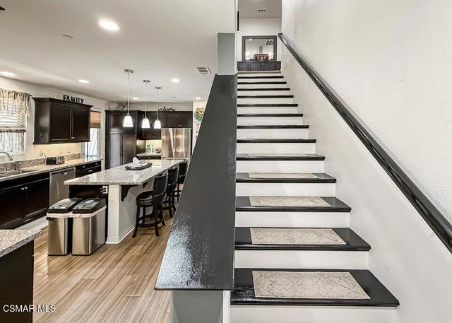 FHA APPROVED! WARRANTABLE!This is the kind of home that makes buyers do a double take.Located in the highly sought-after River Village community--one of the few WARRANTABLE developments in the Santa Clarita Valley--this 2016 Beazer-built residence delivers space, style, and smart design at every turn. Thoughtfully upgraded, the home features enhanced flooring, a striking granite kitchen island, designer fixtures, and under-cabinet lighting that adds both function and ambiance to the heart of the home.The entry level offers direct access to the attached two-car garage along with a private bedroom and en-suite bath--an ideal setup for guests, extended family, or multigenerational living. This level also opens to a charming outdoor area, perfect for morning coffee or winding down in the evening.Upstairs, natural light fills the open-concept great room, creating a bright and welcoming space for everyday living and entertaining. The kitchen shines with Energy Star appliances, custom cabinetry, and thoughtful finishes, while recessed lighting and ceiling fans enhance comfort throughout. A full bedroom and bathroom are also located on this level, along with a covered deck that extends your living space year-round.The top floor is dedicated to relaxation, anchored by a spacious primary suite featuring dual sinks, a soaking tub, separate shower, and a generous walk-in closet. Two additional bedrooms share a convenient Jack-and-Jill bath, and the laundry room is perfectly positioned on the same level for everyday ease.Additional highlights include a tankless water heater and Beazer's Energy Star certification, offering long-term efficiency and comfort.River Village residents enjoy resort-style amenities including a pool, spa, and playground, all within a gated community close to shopping, dining, and convenient freeway access.