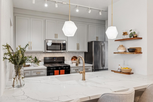 Welcome to 1708 Lexington, a modern condo that feels easy the moment you step inside. Just one block from Del Norte BART and the Ohlone Greenway, it’s surprising how quickly you’ll feel tucked away and right at home. That sense of ease continues as a modern, open floor plan unfolds. At the center of the home, the remodeled kitchen is both luxurious and functional, with an oversized island that invites gathering, projects, and everyday rituals. The spa-like bathroom adds to the feeling of calm, while built-in closet systems throughout keep everything feeling orderly and uncluttered. In-unit laundry and a dishwasher make daily routines feel simple. Two comfortable bedrooms enjoy gentle morning light and a sense of separation from the main living space. That feeling of retreat carries outdoors, where a private patio offers space for fresh air or a quiet reset. Redwood trees flank the charming wood-shingled building, adding a layer of calm within the urban setting. The unit includes parking in a lower-level garage, additional private storage, and access to a shared outdoor common area, perfect for casual entertaining or a friendly hello with neighbors.