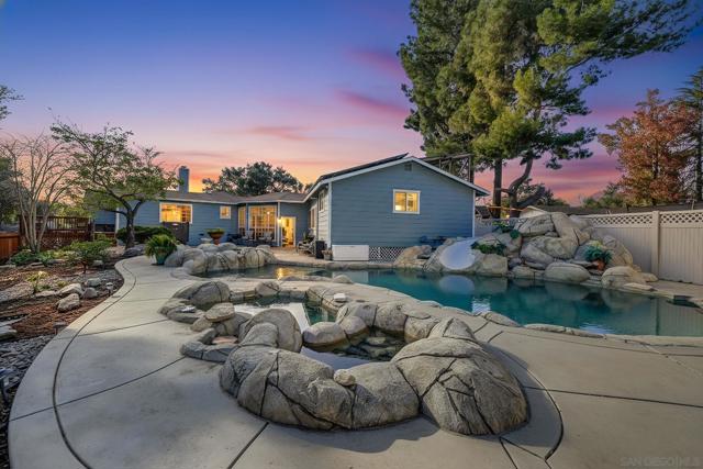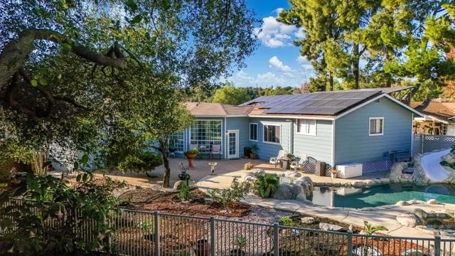 OWNED SOLAR. Nestled in the serene hills of San Diego County, this exceptional estate offers a rare blend of privacy, character, and outdoor living in one of Fallbrook’s most desirable neighborhoods. Set on expansive grounds, the property welcomes you with mature landscaping, majestic live oak trees, and citrus fruit trees that surround the home, adding both beauty and function to the setting. The residence showcases timeless charm with brick accents, warm wood details, and thoughtfully designed living spaces filled with natural light. Large windows frame peaceful views of the property, creating a seamless connection between indoor comfort and the outdoors. The backyard is a true retreat, featuring a private pool with slide, spa, waterfall, and tranquil pond, perfect for relaxing or entertaining. A fully fenced section of the yard provides a safe and dedicated space for dogs, while the remaining outdoor areas offer ample room for gatherings, gardening, or future enhancements. Additional highlights include cozy fireplaces, built-in cabinetry, and a spacious garage with a workshop area. This property delivers the ideal balance of quiet country living and convenient access to local amenities, making it a standout opportunity in the Fallbrook community.
