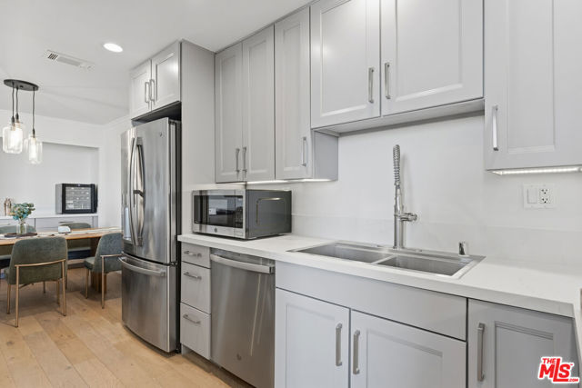 Welcome home to this extensively remodeled, 1 bedroom condominium located in the coveted Franklin Towers. With an open floorpan and modern design, features include custom kitchen cabinetry with quartz countertops and a premium GE Profile appliance package with dedicated dry bar with wine fridge. Floor-to-ceiling glass panels creating a light-filled, open floor plan afford sweeping, panoramic views of the Hollywood Hills, Griffith Observatory, Hollywood, and the Los Angeles skyline from the unit. Seamless indoor-outdoor flow to an expansive private, tiled balcony ideal for outdoor dining, barbecuing, and lounging. Additional features include recessed lighting, central HVAC with Nest thermostat, custom shades and curtains with hardwood floors throughout. Fully remodeled bathroom with quartz countertops, rainfall showerhead, floating mirrors, and matching designer fixtures. Extensive built-in storage, including a walk-in closet with Bosch in-unit washer and dryer. Full-service, prestigious Franklin Towers with white-glove amenities, including 24/7 concierge and on-site valet. Heated lap pool, hot tub, spa, sauna, dog run as well as rooftop gym, residents' clubhouse and expansive rooftop sun deck with 360-degree views from cityscape to ocean. Prime Hollywood location, minutes from Runyon Canyon, Sunset Strip, and Hollywood Blvd including Dolby Theatre, TCL Grauman's Chinese Theatre, and the Roosevelt Hotel with immediate access to world-class dining, nightlife, and entertainment.