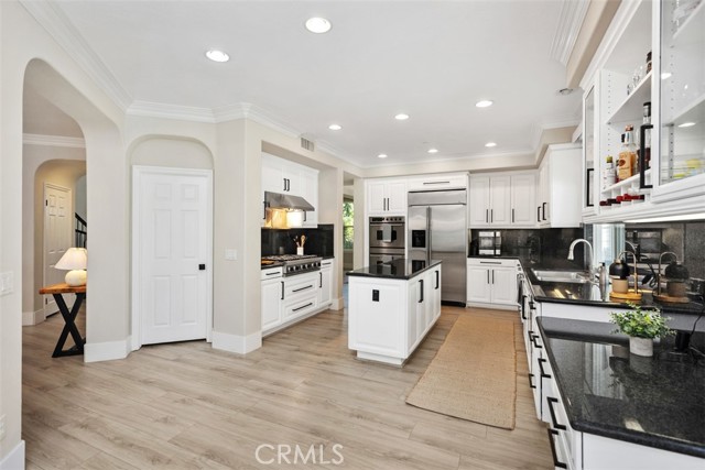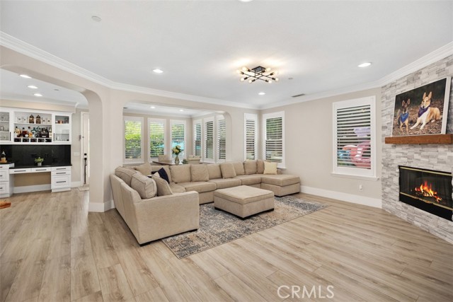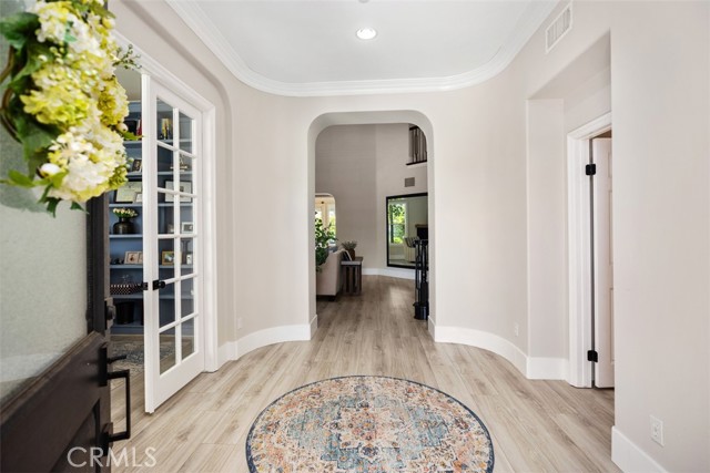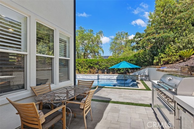 Set on an expansive corner lot in guard-gated Coto de Caza, this highly upgraded property is the largest Terra Vida model available, complete with nearly $550K in recent improvements, including owned solar, renovated baths, and a private pool and spa. A landscaped front yard and 3-car garage welcome you home. Approximitely 4,483 sq ft is designed for entertaining and relaxation. A grand two-story living room opens to the light-filled formal dining room and butler’s pantry, while a sweeping staircase beckons to bedrooms above.This wonderful floor plan includes a private office with French doors and a bonus area/loft, which can be converted to an additional bedroom. The airy, open concept continues in a large family room and adjacent sunroom/breakfast nook that flow through French doors to the outdoor living areas. Craftsmanship is on display with custom built-ins in the private home office and the family room. The chef’s kitchen features a 6-burner Viking gas range, Venta Hood with warming lights and racks, GE Monogram built-in refrigerator, double ovens, a warming oven, and a walk-in pantry for extra storage. Four bedrooms and 4.5 baths include a main-level bedroom suite with new closet organizers and a private full bath remodeled in 2025. Upstairs, the primary suite offers a fireplace retreat, two walk-in closets with new upgraded organizers, and a private view deck. The primary bath is also newly renovated with spa-like amenities, and two additional bedrooms share a renovated Jack-and-Jill bath. Outside, the reimagined backyard is perfect for both gatherings and quiet afternoons, with an in-ground pool and spa surrounded by sun-kissed hardscape and low-maintenance turf, all with excellent privacy. Recent upgrades also include newer LVP and carpet, banisters, interior and exterior paint, a whole-house repipe in 2023, new front door, plantation shutters and remote roller shades, garage door opener, epoxy garage floors, new lighting, retiled fireplaces in the living and family rooms, refreshed landscaping, solar, door hardware, and a whole house fan. The sought-after gated community of Coto de Caza features horse trails, hiking and biking, a clubhouse, gym, pool, spa, BBQ areas, tennis, and two Robert Trent Jones Jr.-designed golf courses at the Coto de Caza Golf & Racquet Club, all only minutes from diverse shopping and dining. With its blend of generous scale, thoughtful upgrades, and prime Coto de Caza location, this home delivers an exclusive lifestyle.
