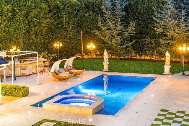 The park-like backyard and yard space showcase mature landscaping, fruit trees, a resort-style pool, and a large BBQ area—ideal for entertaining, relaxing, and outdoor enjoyment. A chef’s kitchen with stainless steel appliances and breakfast area is complemented by a dedicated laundry and service wing, maid’s quarters, and a flexible bonus room. Additional features include a two-car garage and ample storage.